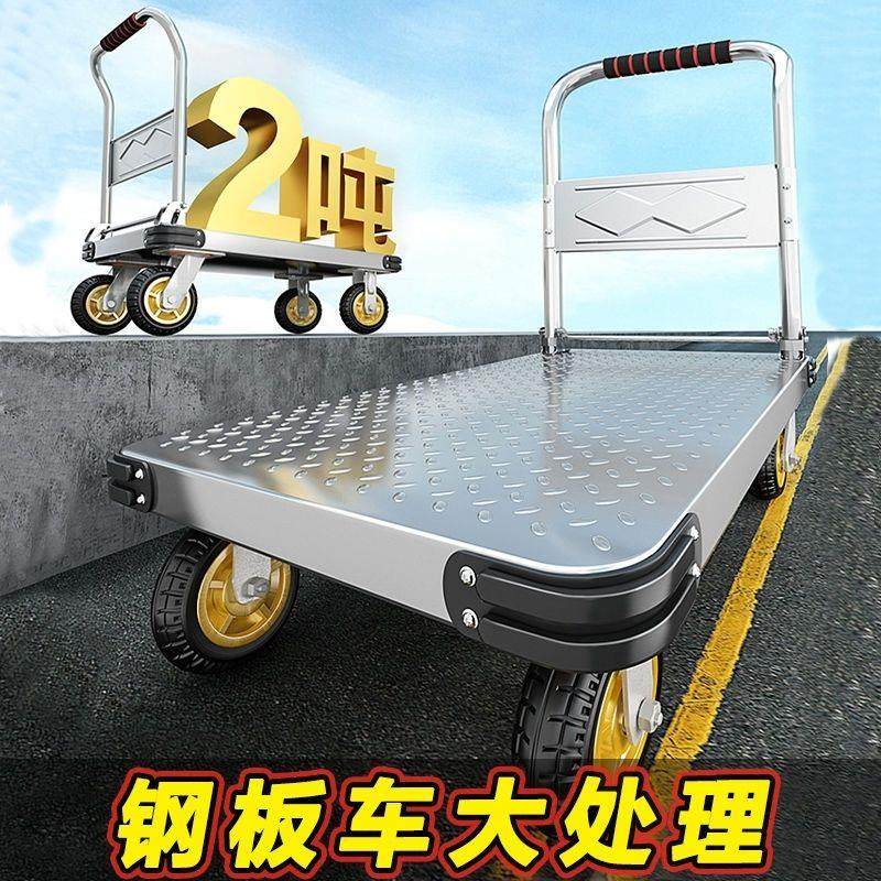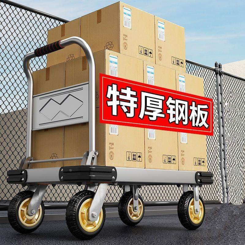 钢板手推车小推车拉货可折叠平板车小拉车家用便携搬运拖车手拉车