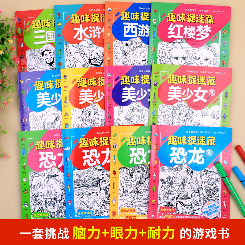 趣味捉迷藏全套12册隐藏的图画找东西的图画书小学生 美少女四大名著恐龙极限视觉挑战书儿童观察专注力训练智力大开发益智游戏书
