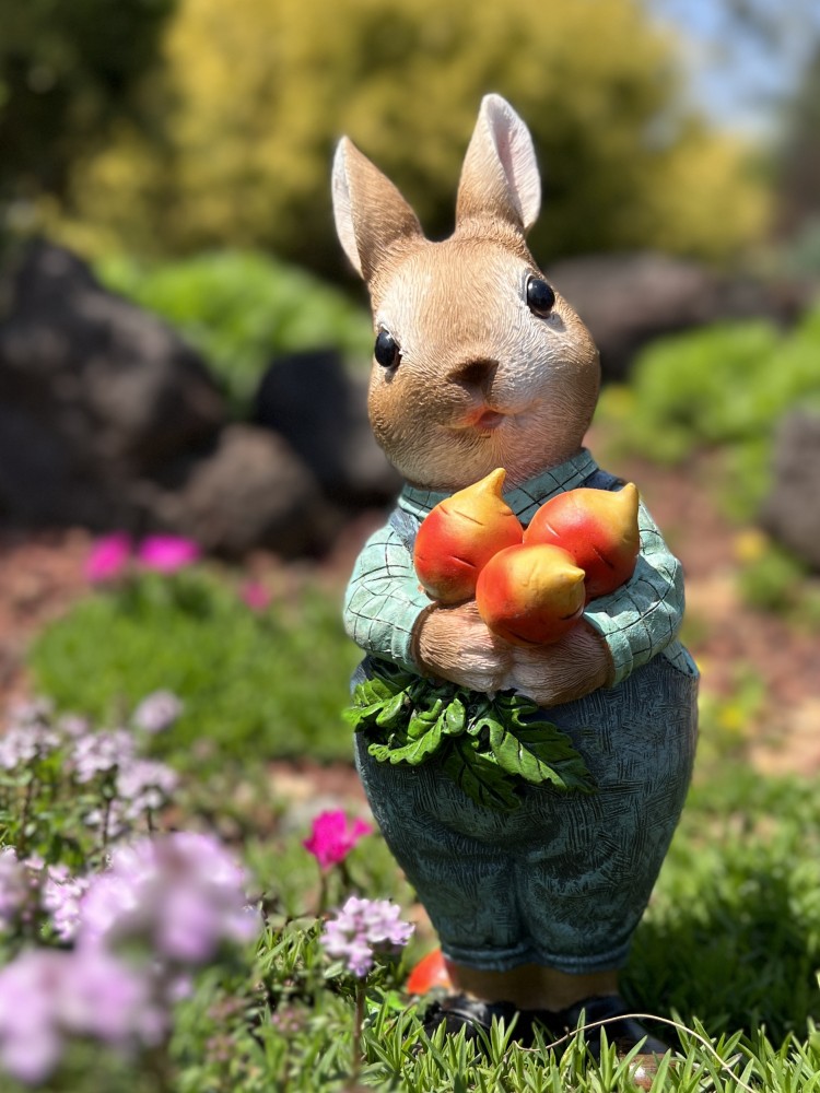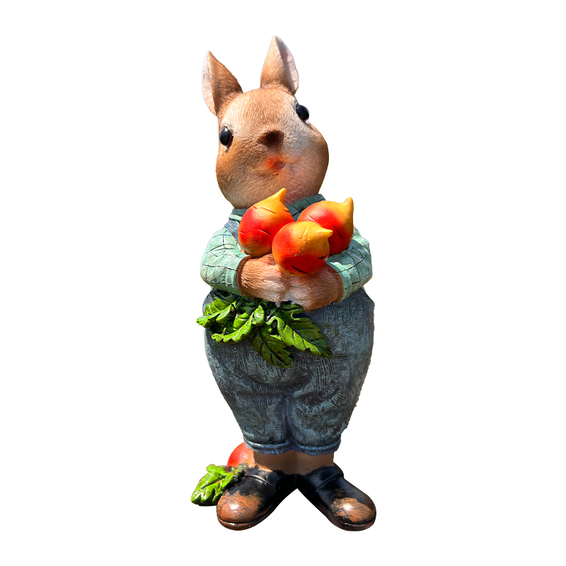 美式乡村小兔子拔萝卜树脂摆件花园庭院阳台装饰幼儿园布置摆设