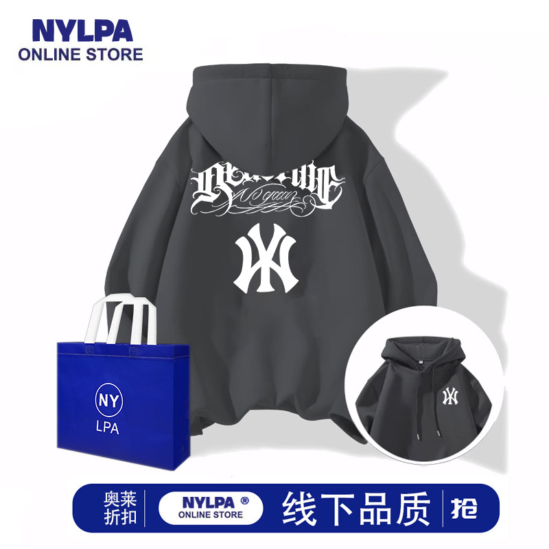 NYLPA2025连帽卫衣奇卡诺字体logo印花加绒美式重磅春秋帽衫外套