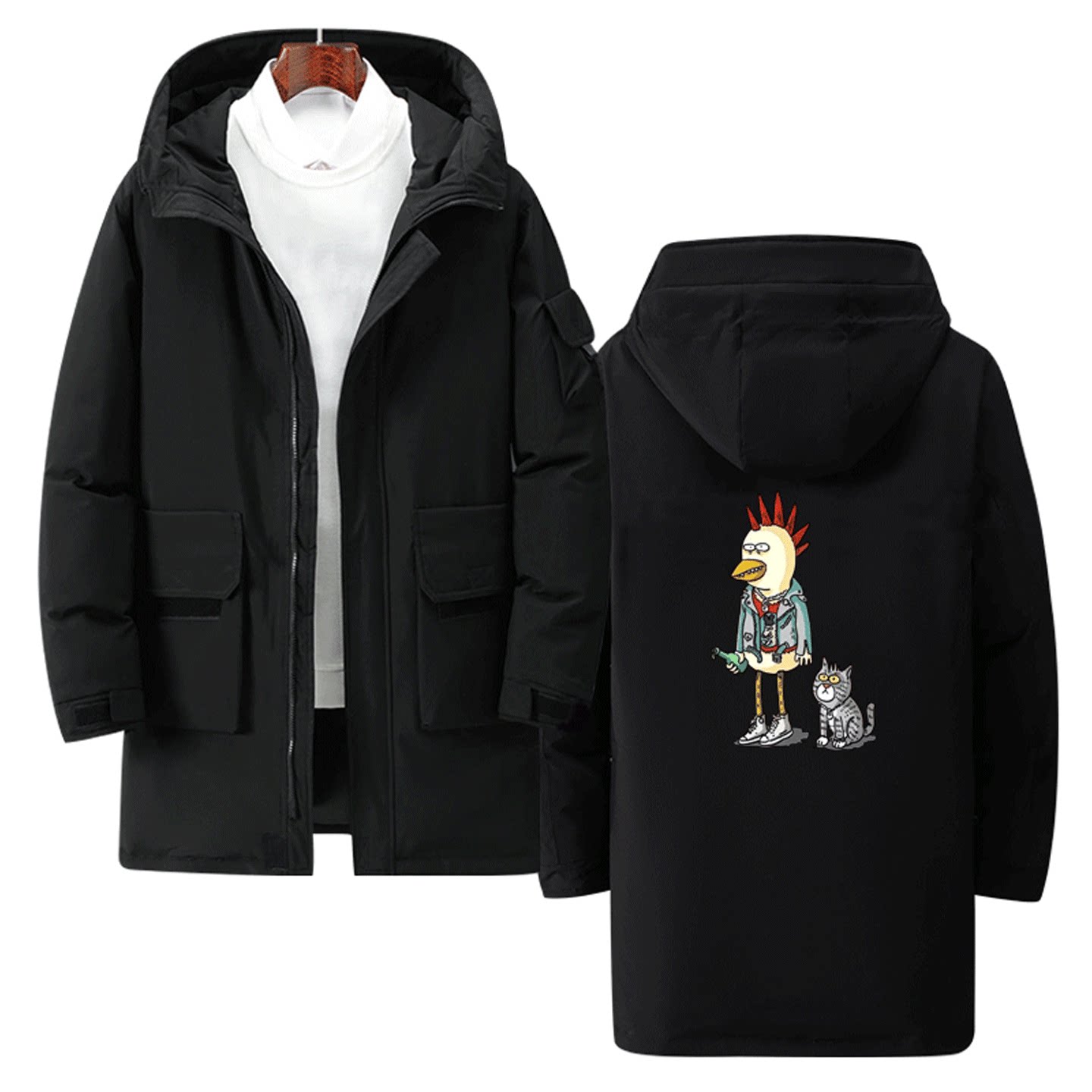 中国摇滚新裤子乐队北海怪兽周边咪咪嘎嘎男女可定制中长款羽绒服