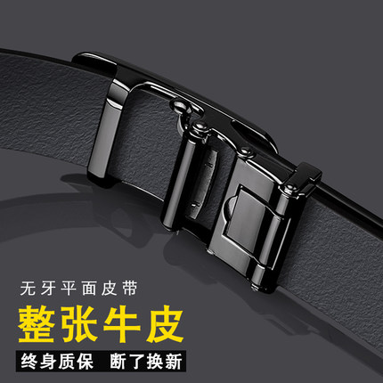 无牙自动扣皮带男士头层纯牛皮无孔腰带中年真皮裤带男商务免打孔