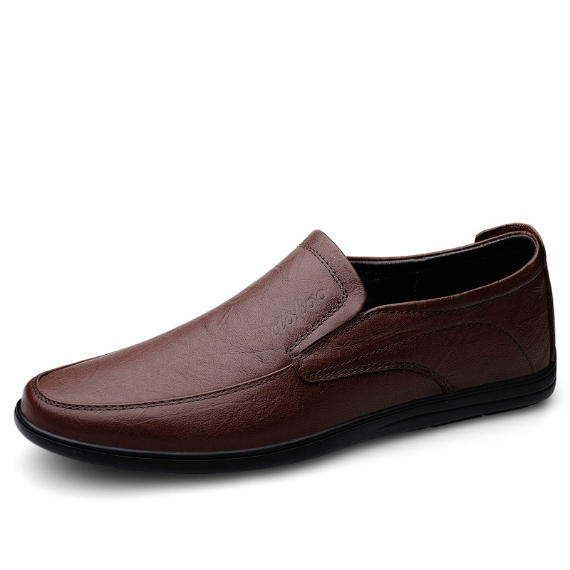 男皮鞋秋季韩版男士透气青年圆头真皮休闲皮鞋男鞋子软底豆豆鞋男