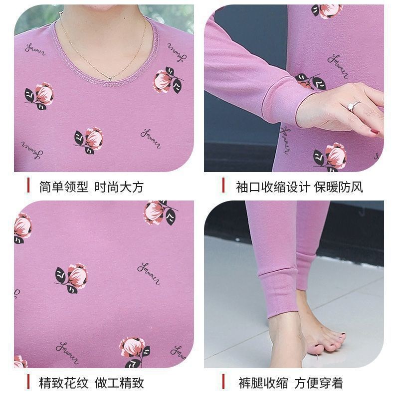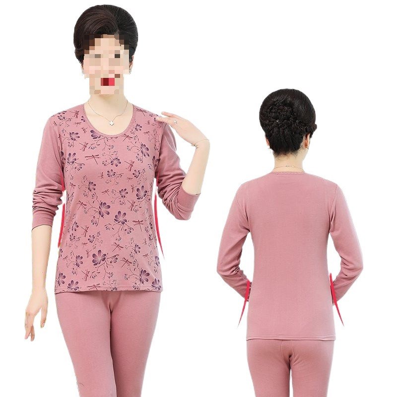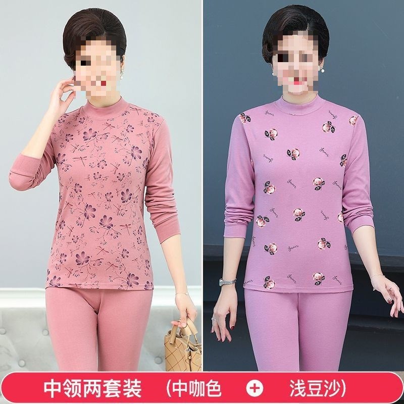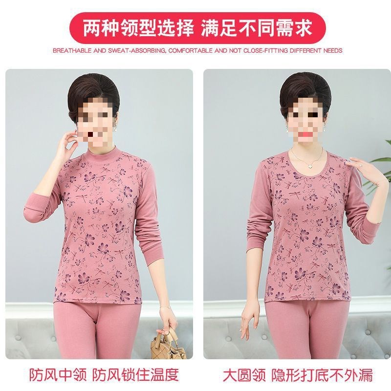 中老年秋衣秋裤套装女薄款高领大码棉毛衫百搭妈妈保暖内衣女