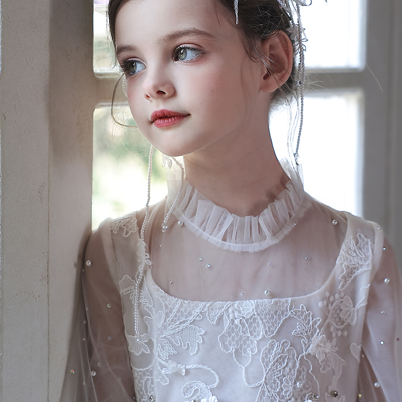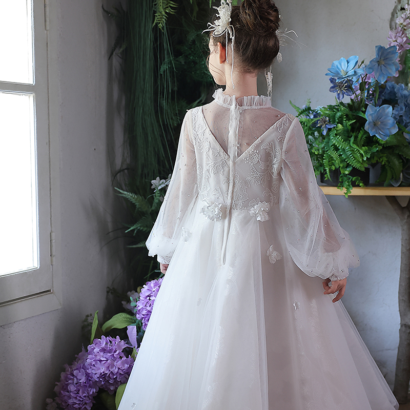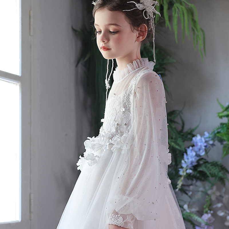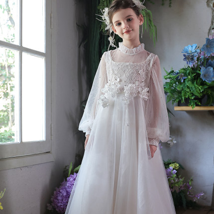 儿童礼服新款白色轻奢小众公主裙花童走秀晚礼服钢琴小主持演出服