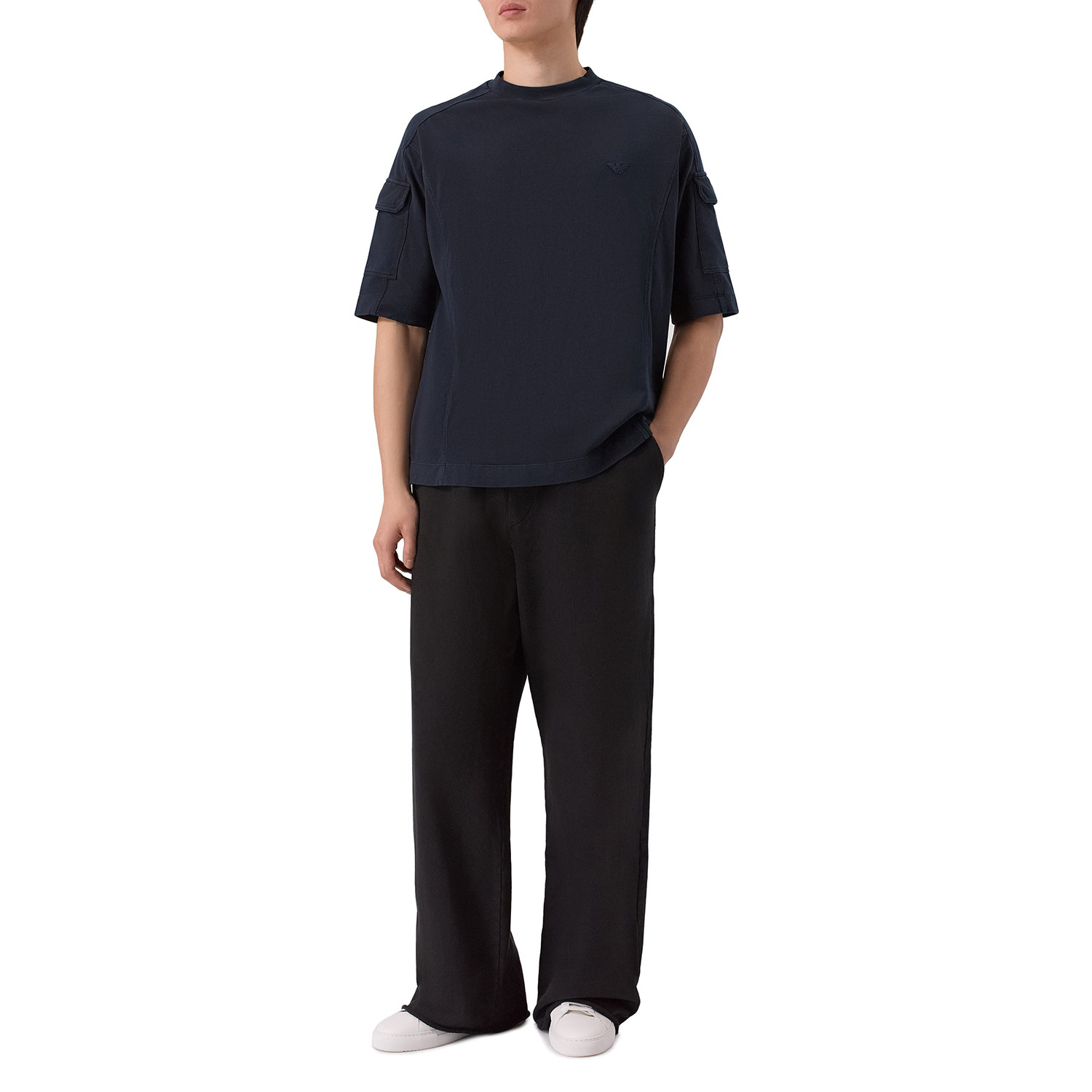 Armani/阿玛尼EA 男士刺绣鹰标宽松短袖T恤 EM004910 AF13715
