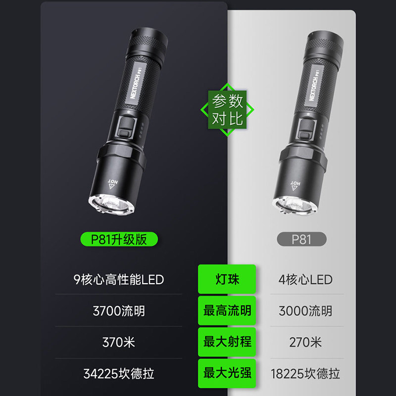 纳丽德P81升级款强光战术手电筒