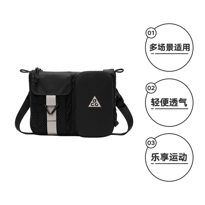【自营】NIKE耐克男户外收纳斜挎魔术贴拉链口袋单肩包HJ8180-010