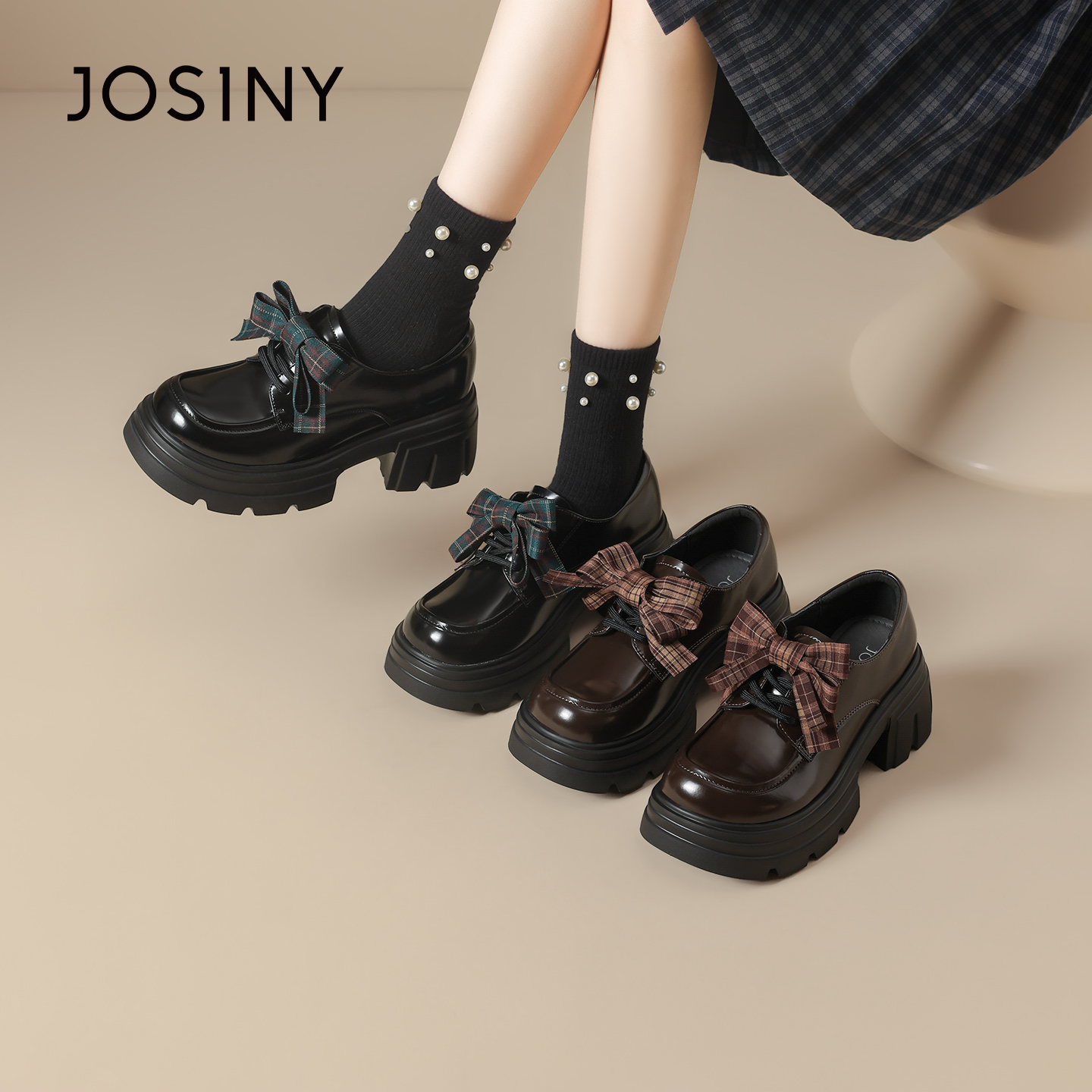 卓诗尼秋季25厚底乐福鞋女鞋学院风蝴蝶结通勤黑色小皮鞋百搭舒适