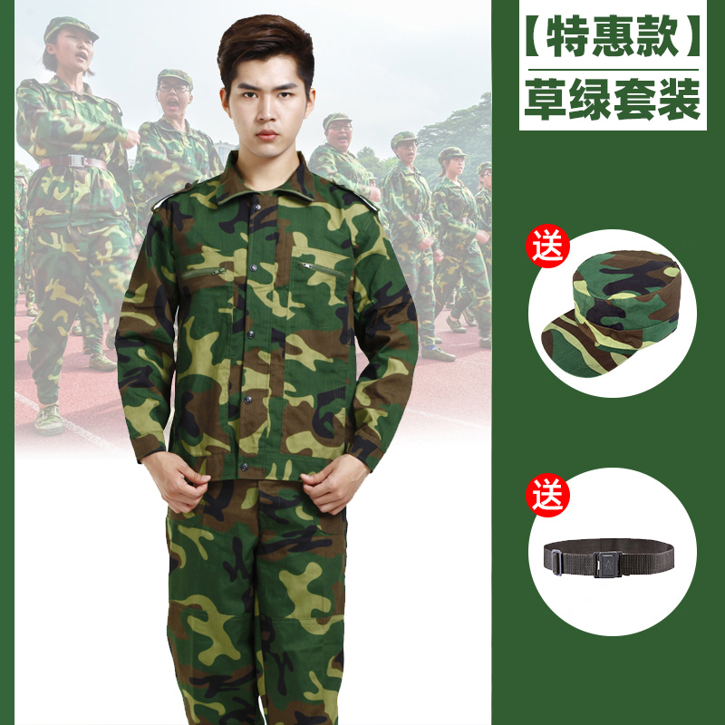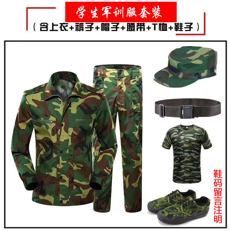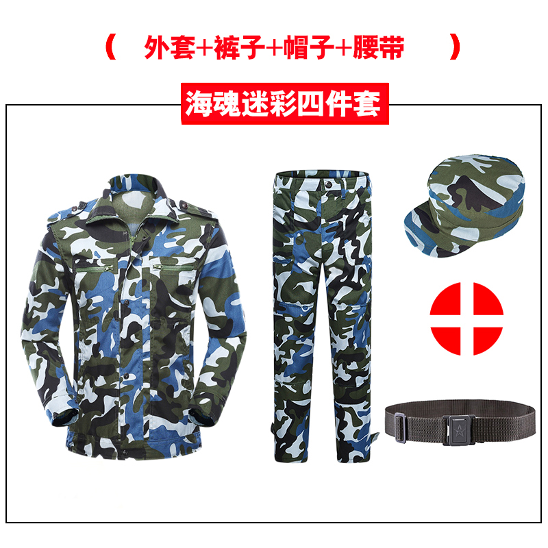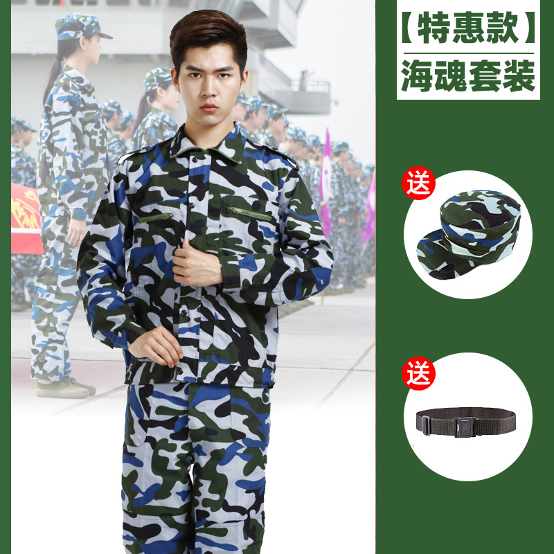 纯棉军训迷彩服套装初高中男女大学生军训服装水蓝大花迷彩训练服