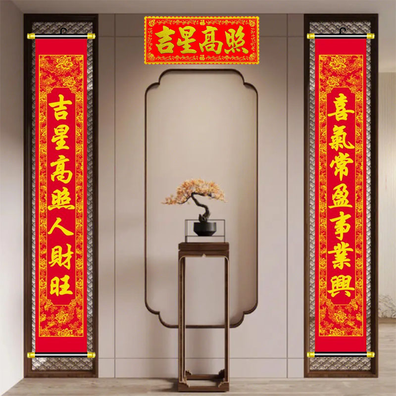 新年挂式对联高档植绒布料客厅装饰挂饰春联春节创意门口卷轴对联