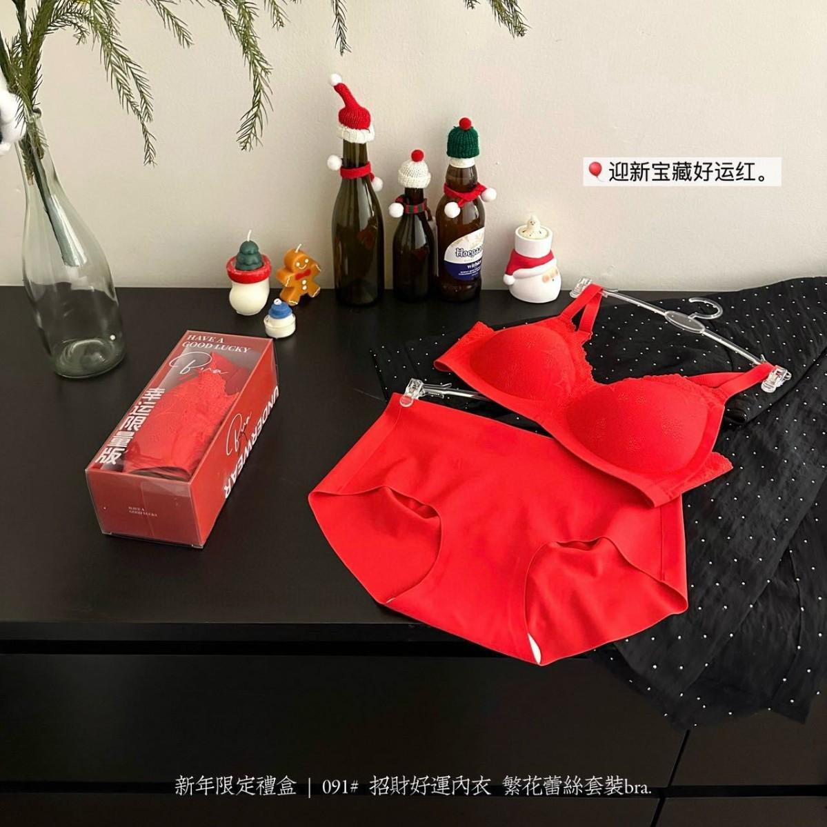 新年招财好运大红色内衣繁花蕾丝套装结婚本命年聚拢无痕文胸