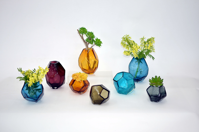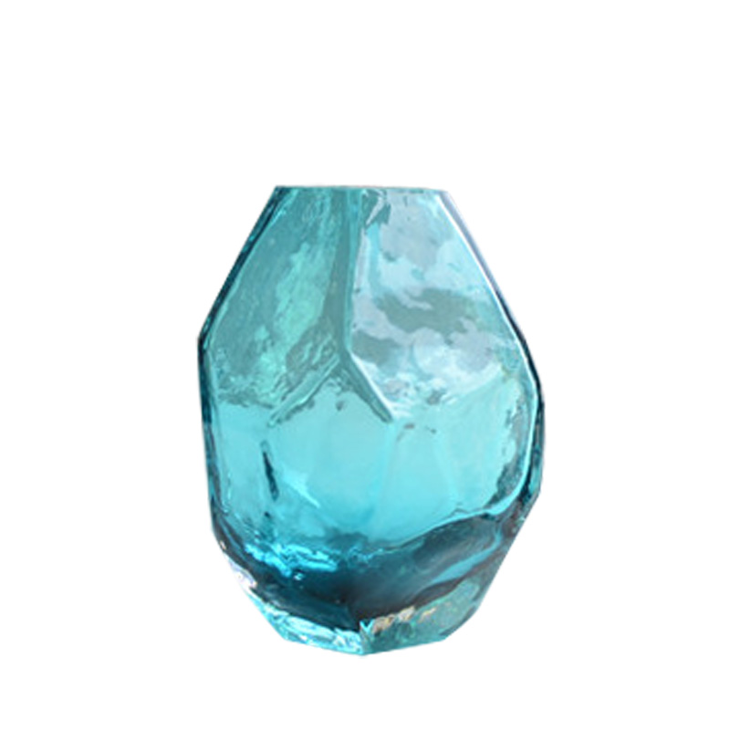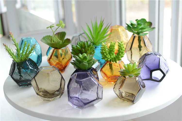 北欧简约小号彩色通透玻璃花瓶几何多面水晶迷你水培花器家居摆件