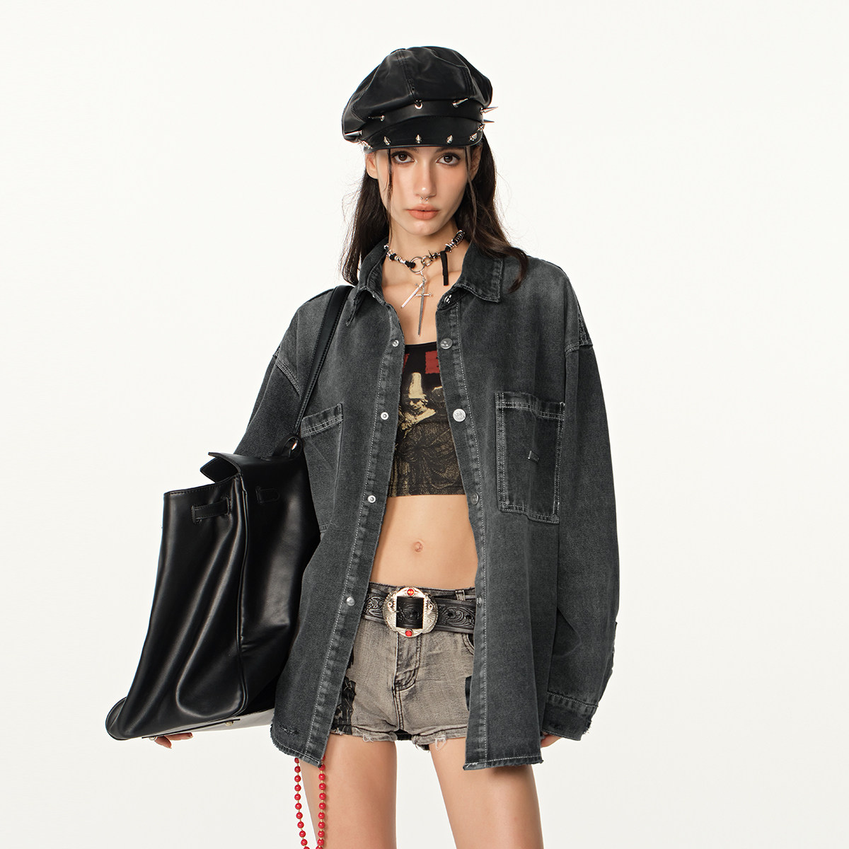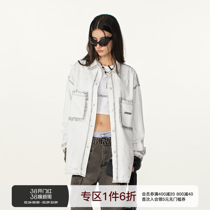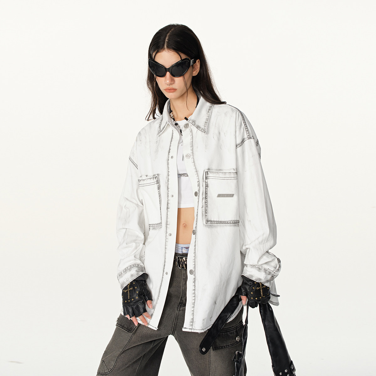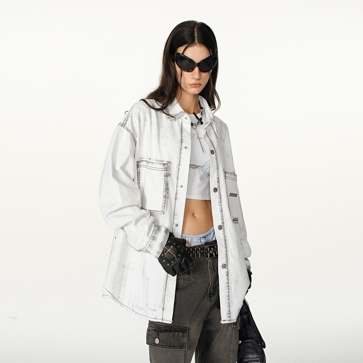 FORNINES美式废土风工装牛仔衬衫男女潮牌春季款新款高街夹克外套