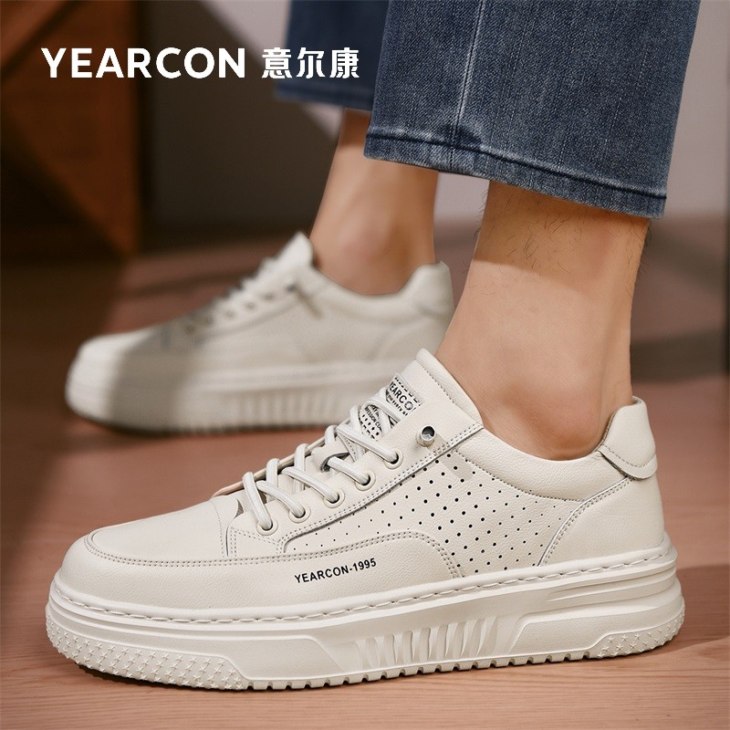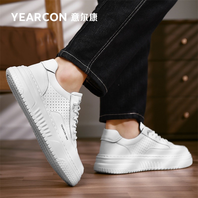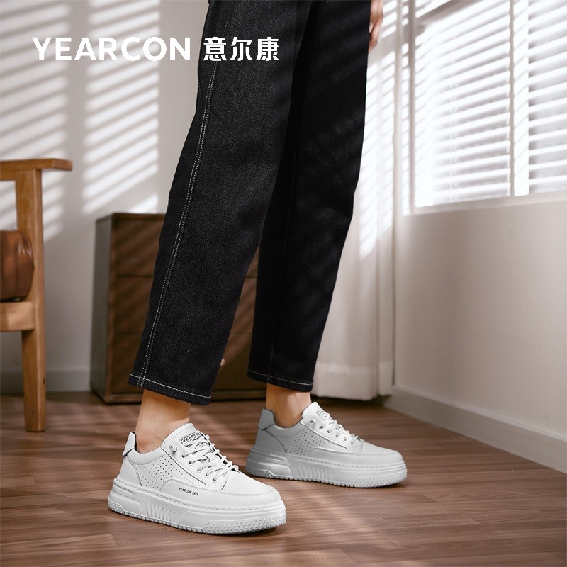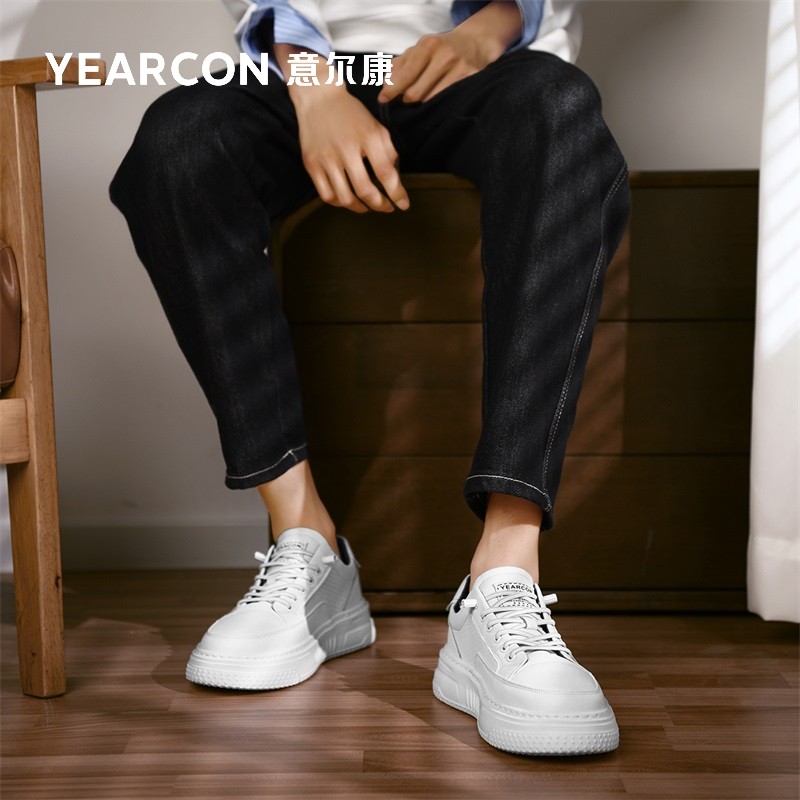 意尔康男鞋秋季2025新款男士运动休闲时尚百搭厚底免系带白色板鞋