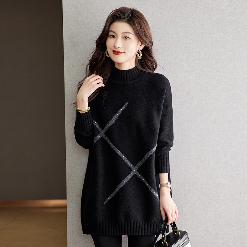 小个子羊毛针织连衣裙2025新款女秋冬中长款黑色打底配大衣毛衣裙