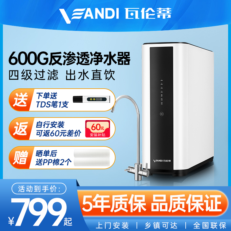瓦伦蒂净水器ro反渗透净水机家用直饮600G厨房自来水过滤器纯水机