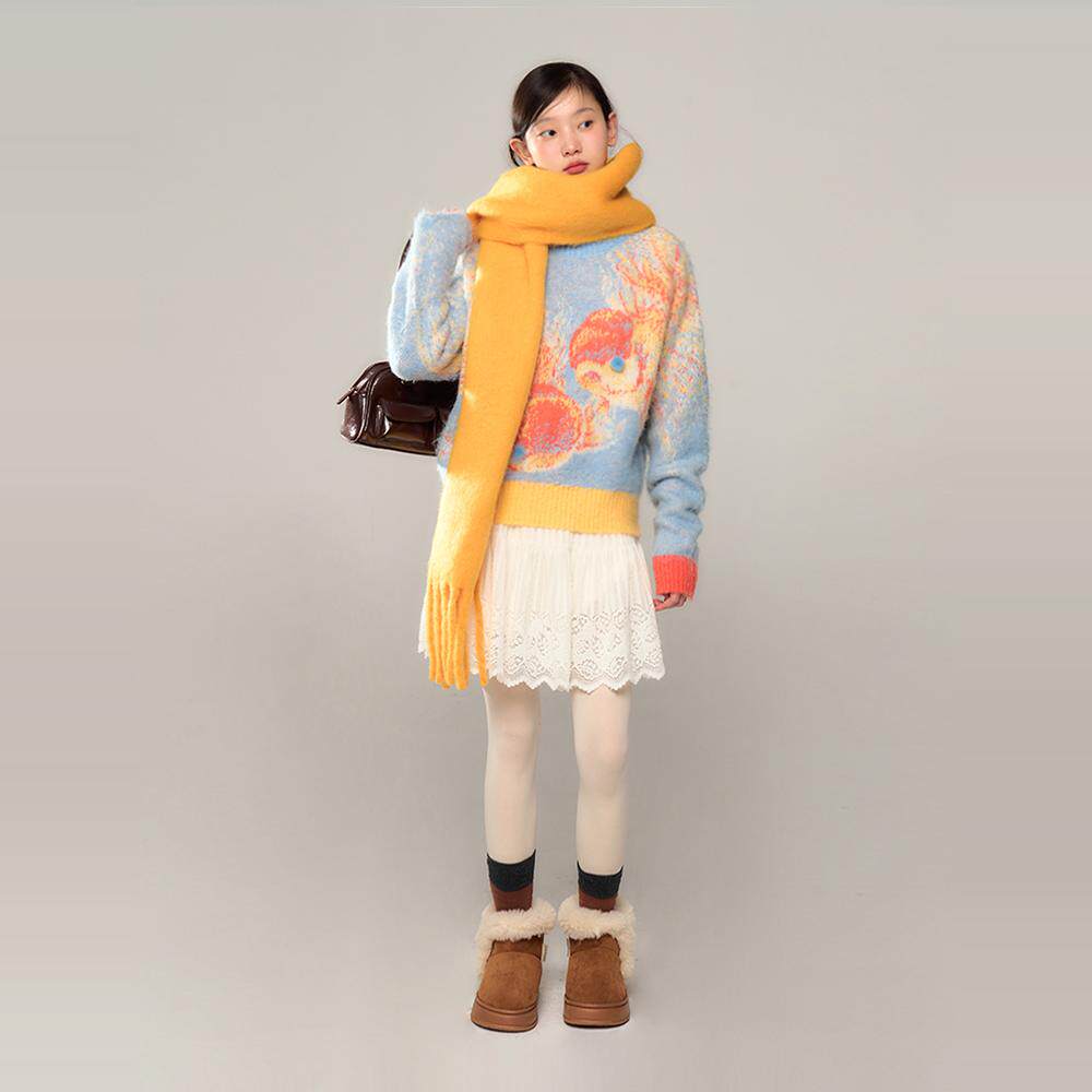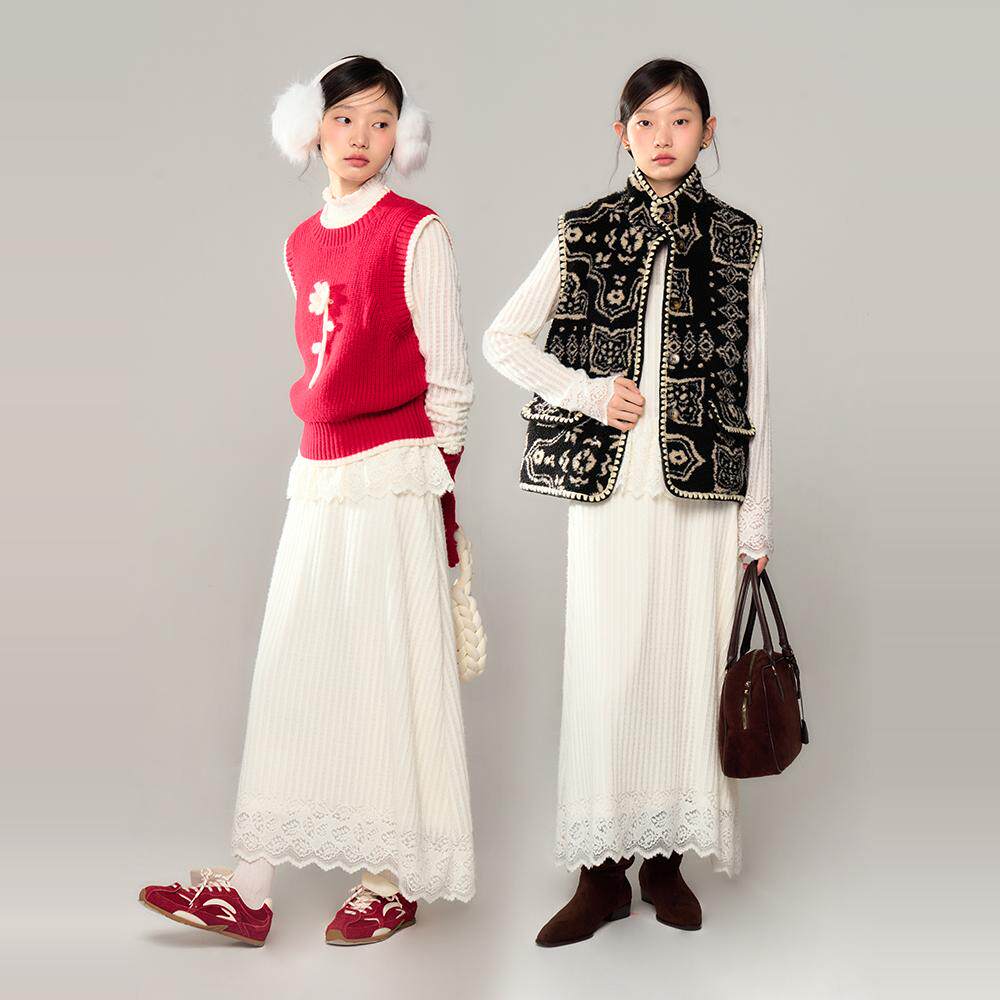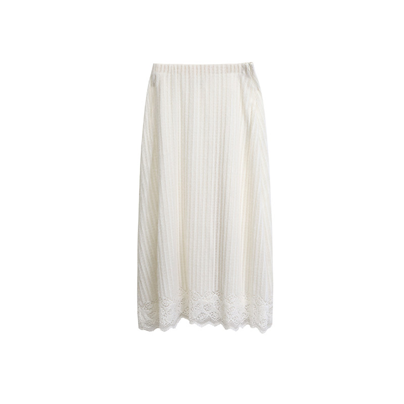 有耳uare纯白蕾丝针织A字半身裙