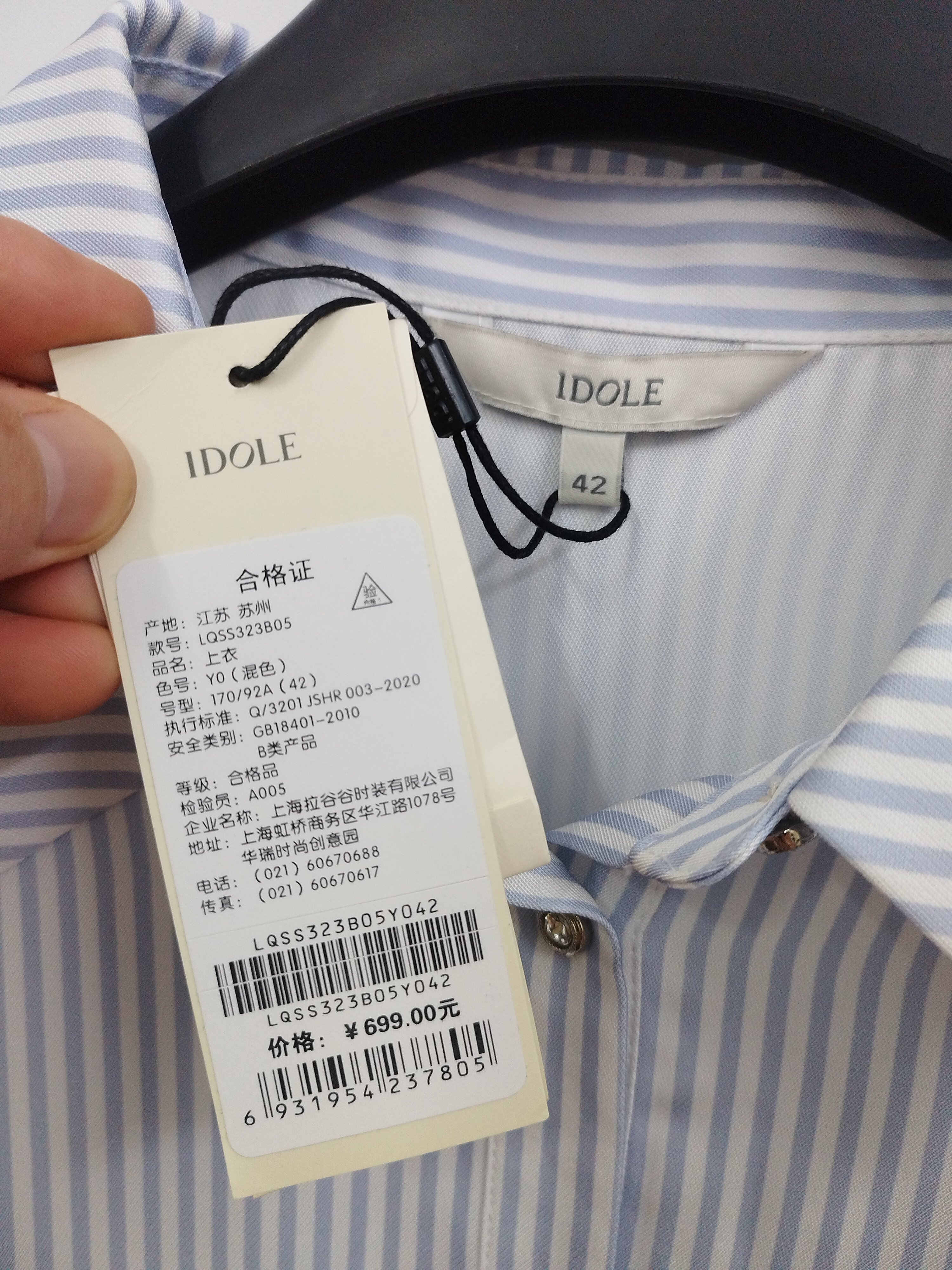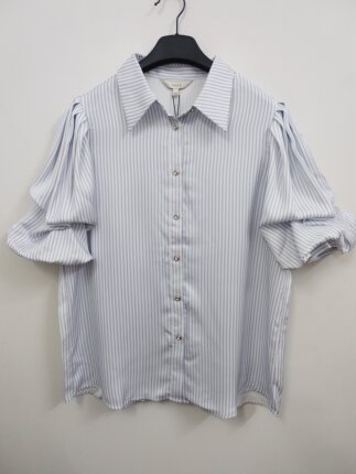 IDOLE奕多 高级感通勤条纹设计感宽松泡泡袖垂感大码衬衫 L/XL码