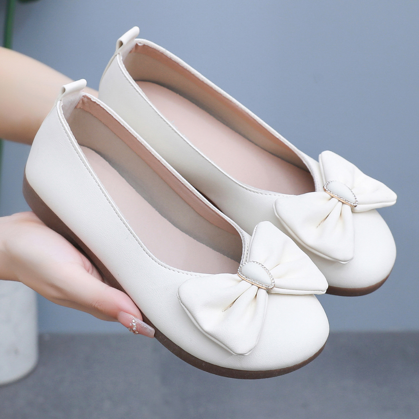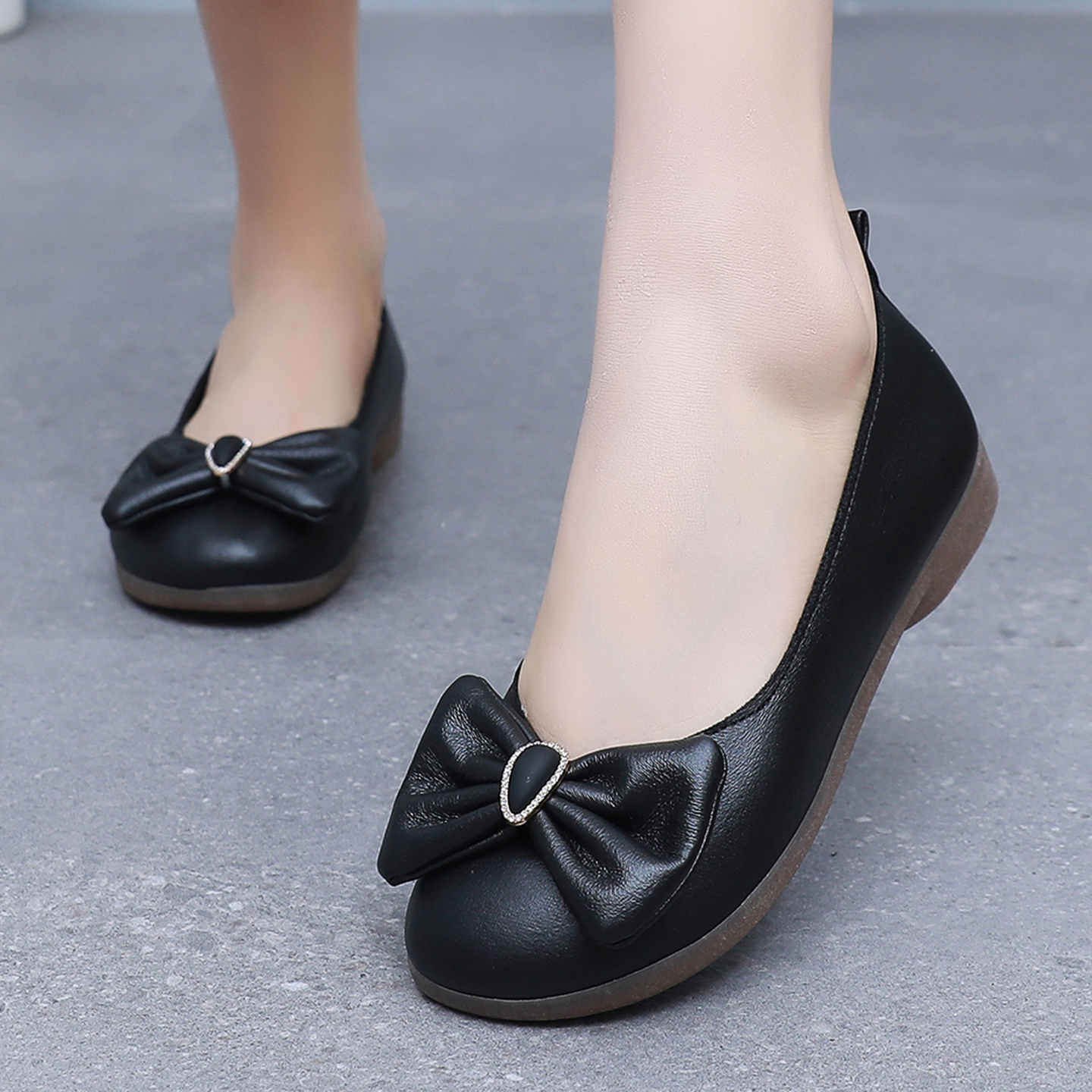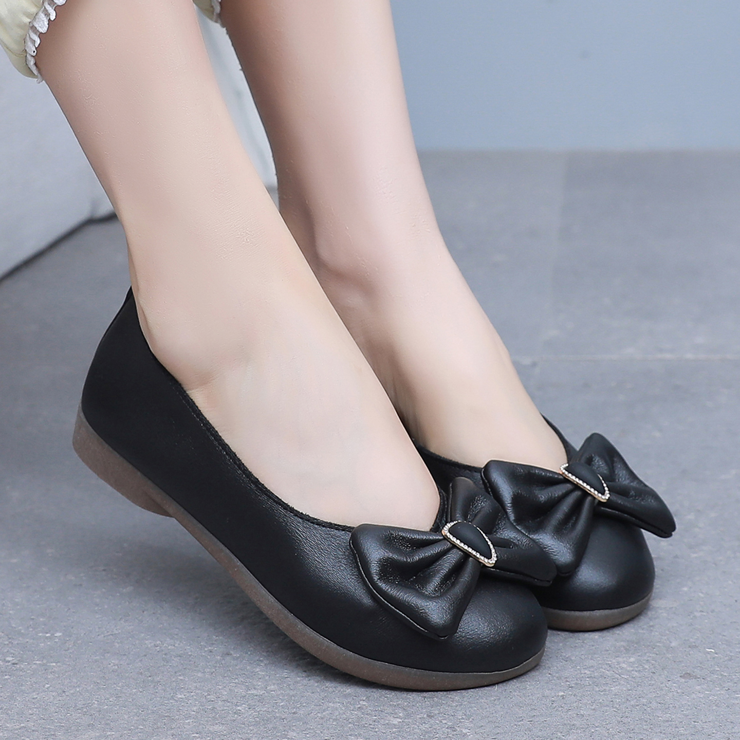 老北京布鞋女2025新款平底蝴蝶结单鞋上班工作鞋软底不累脚豆豆鞋