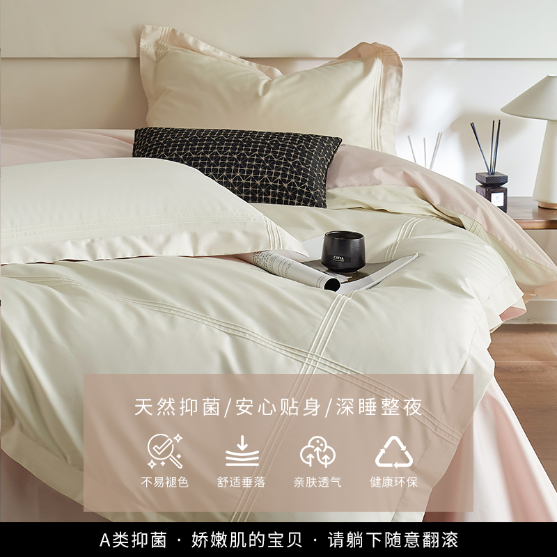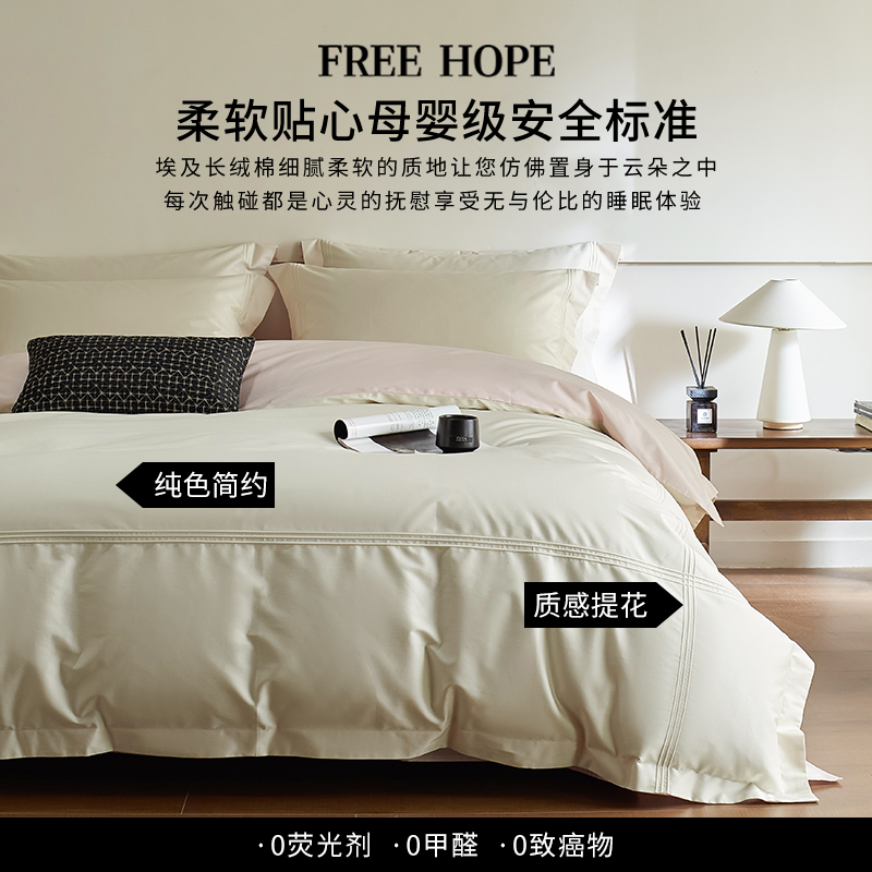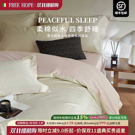 Freehope意大利全棉被套2025新款秋季裸睡纯色纯棉贡缎床上四件套
