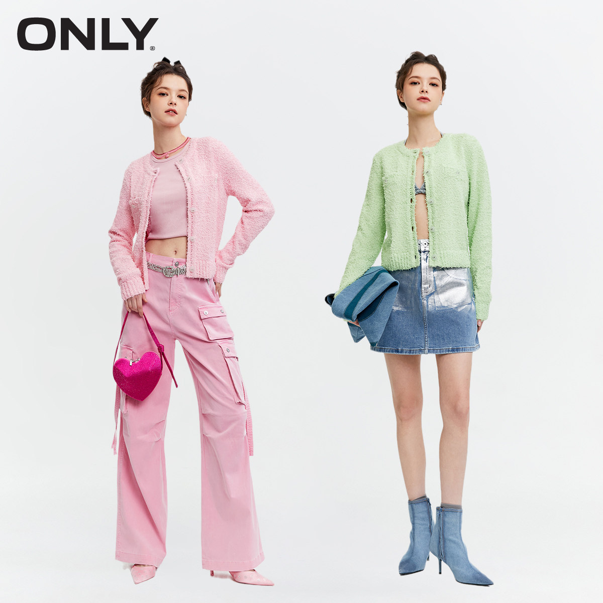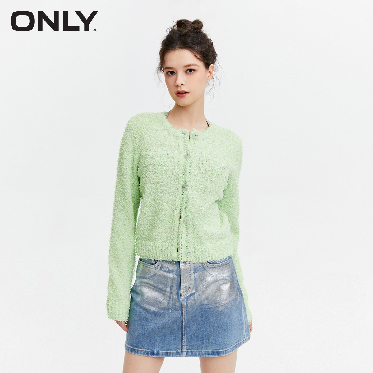 【ONLY奥莱】秋冬设计感简约纽扣圆领修身毛衣针织衫女