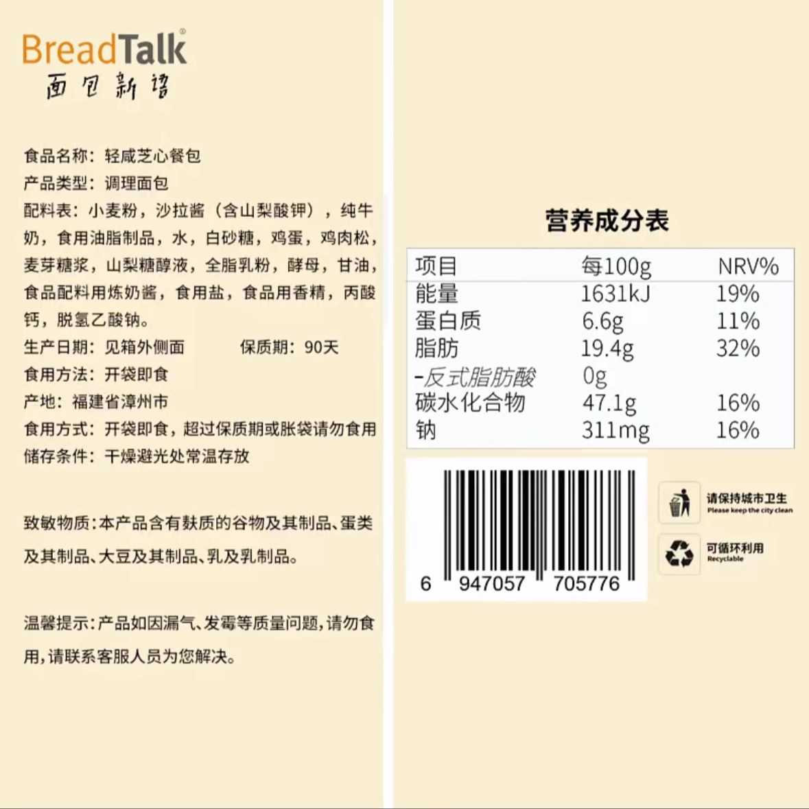 面包新语轻咸芝心餐包夹心面包早餐代餐办公室零食学生充饥点心