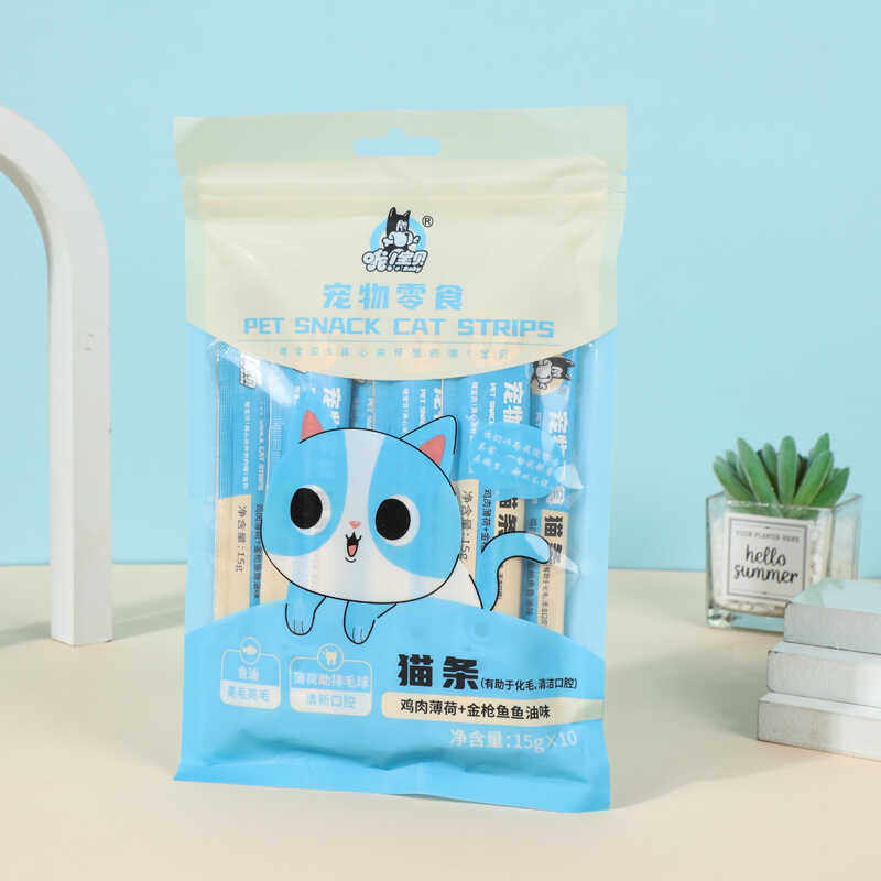 哦宝贝宠物零食猫条鸡肉薄荷金枪鱼口味化毛功能猫条150g营养增肥