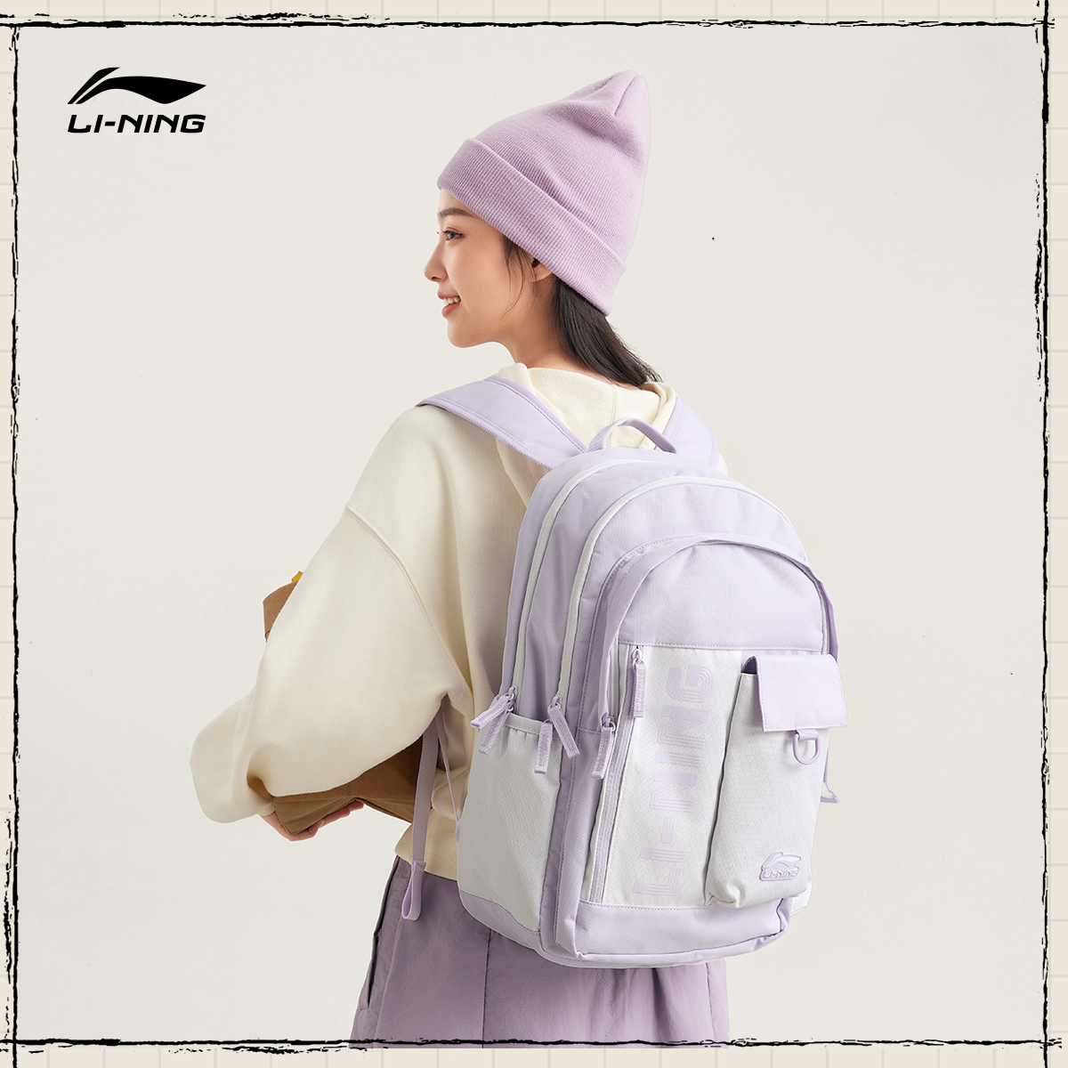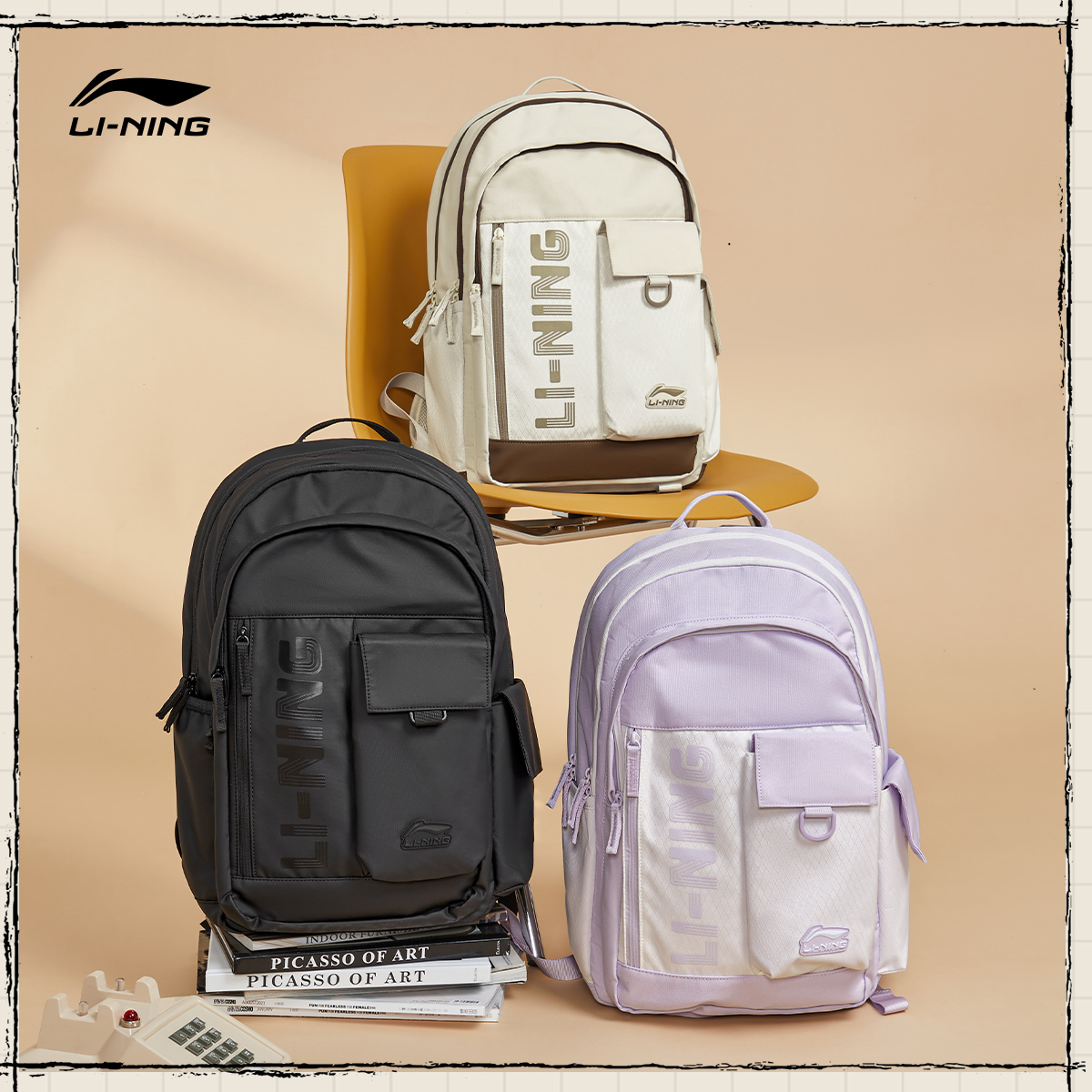 李宁双肩包男女2025新款旅游轻便高颜值小众背包学生书包运动包