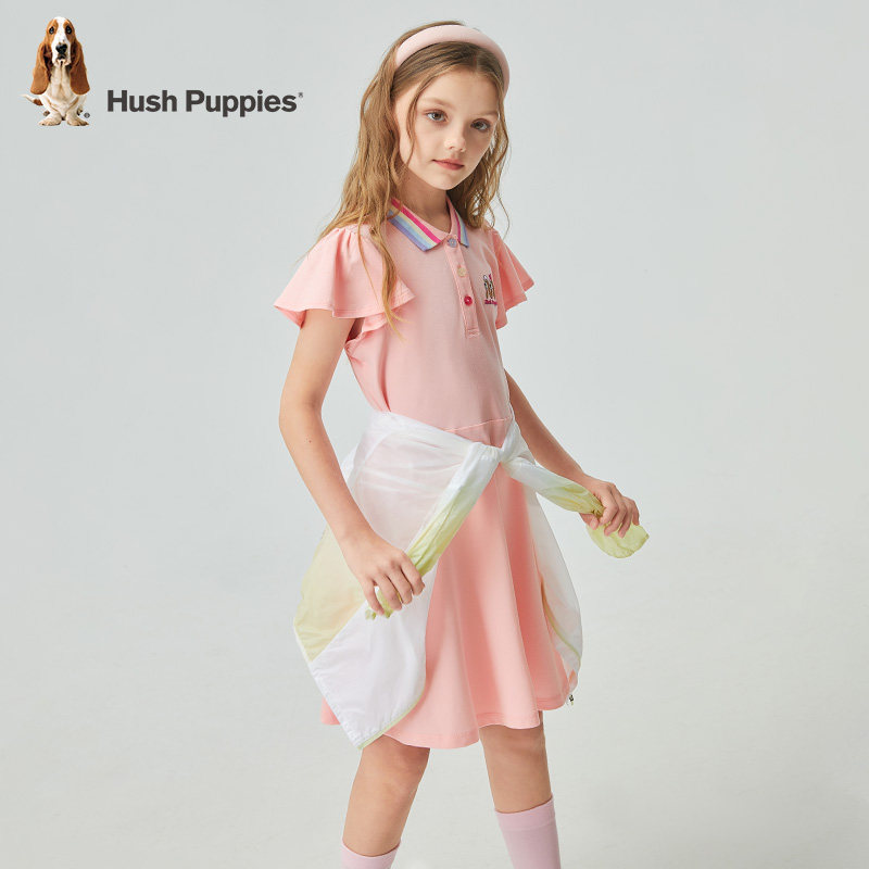 暇步士童装女童连衣裙夏季新款大童甜美polo裙儿童休闲透气半袖裙