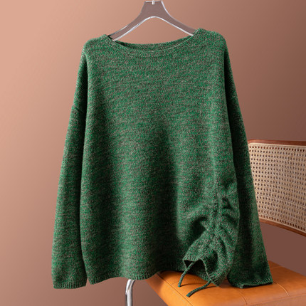 美式宽松!邓肯纱100纯羊毛圆领长袖亲肤厚实毛衣软糯针织套头女