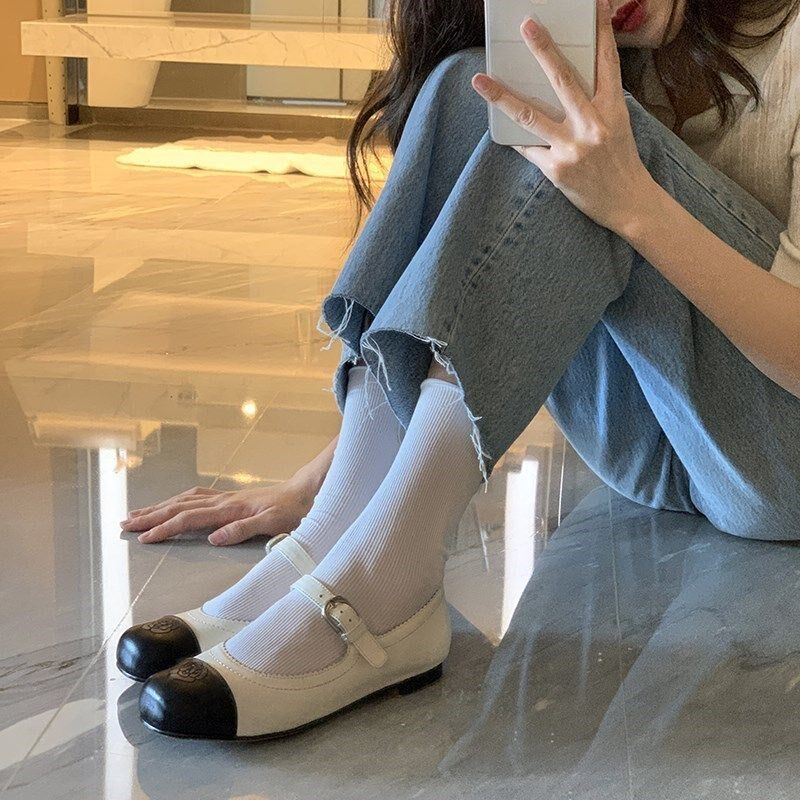 小香风玛丽珍鞋2026新款百搭复古小皮鞋真皮浅口山茶花平底单鞋女