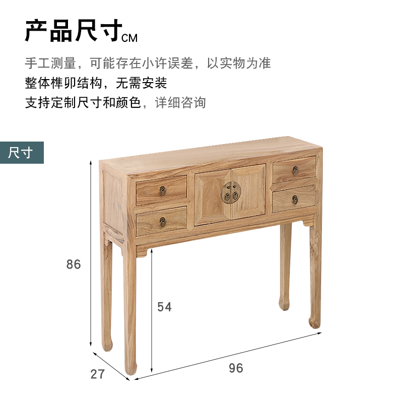 新中式北榆木条案仿古简约玄关柜古典平头台实木储物玄关桌梳妆柜