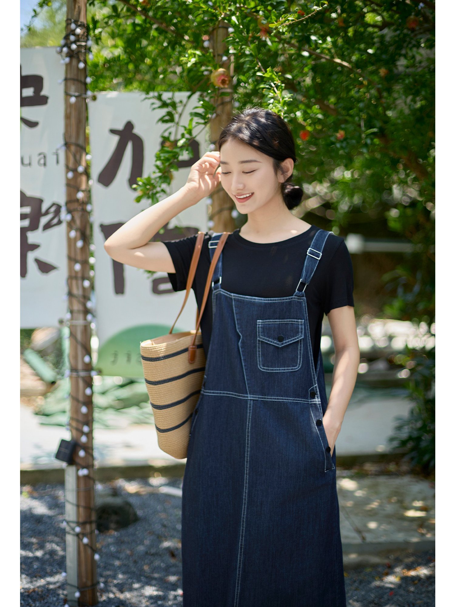 紫璐莱减龄牛仔背带裙套装