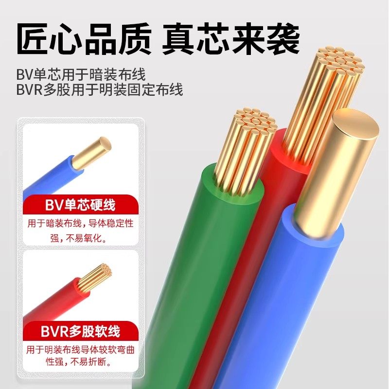 德力西电气BV电线单芯硬线电缆家装用1.5/2.5/4/6/10平方铜芯足米