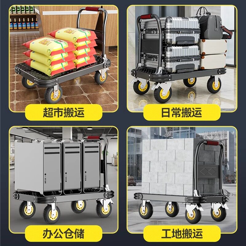 加厚小推车拉货钢板车手推车搬运车家用拖车折叠手拉车快递小拉车