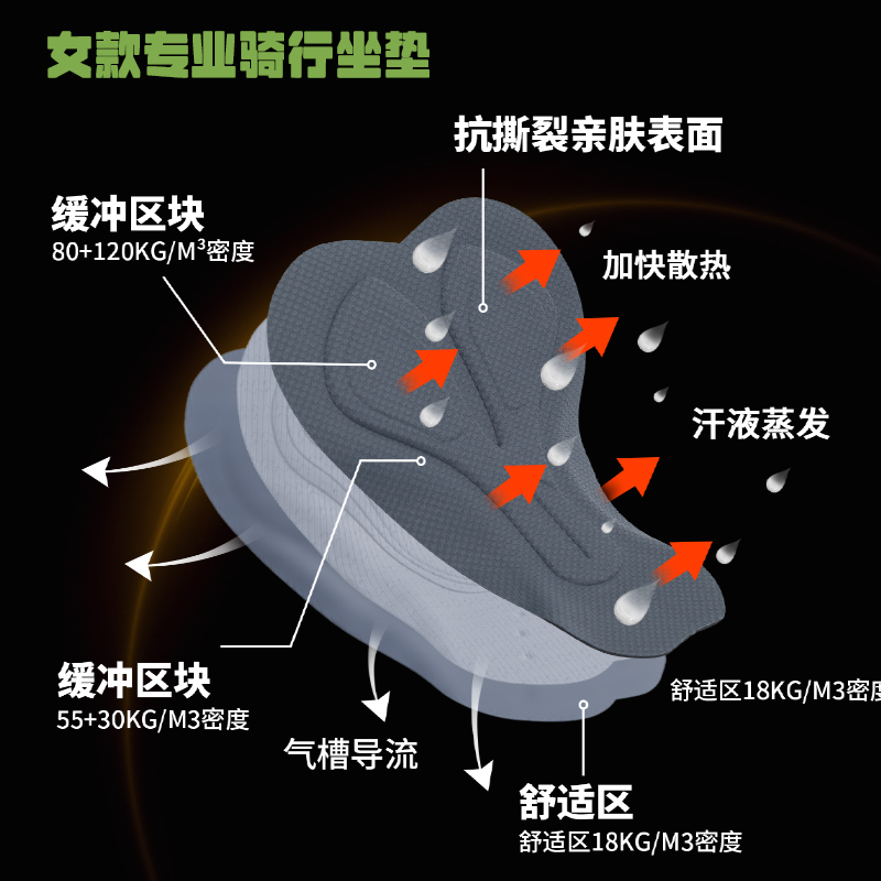 MAISAILY迈赛力女士任意裁夏季骑行短裤速干减震背带短裤持续骑行