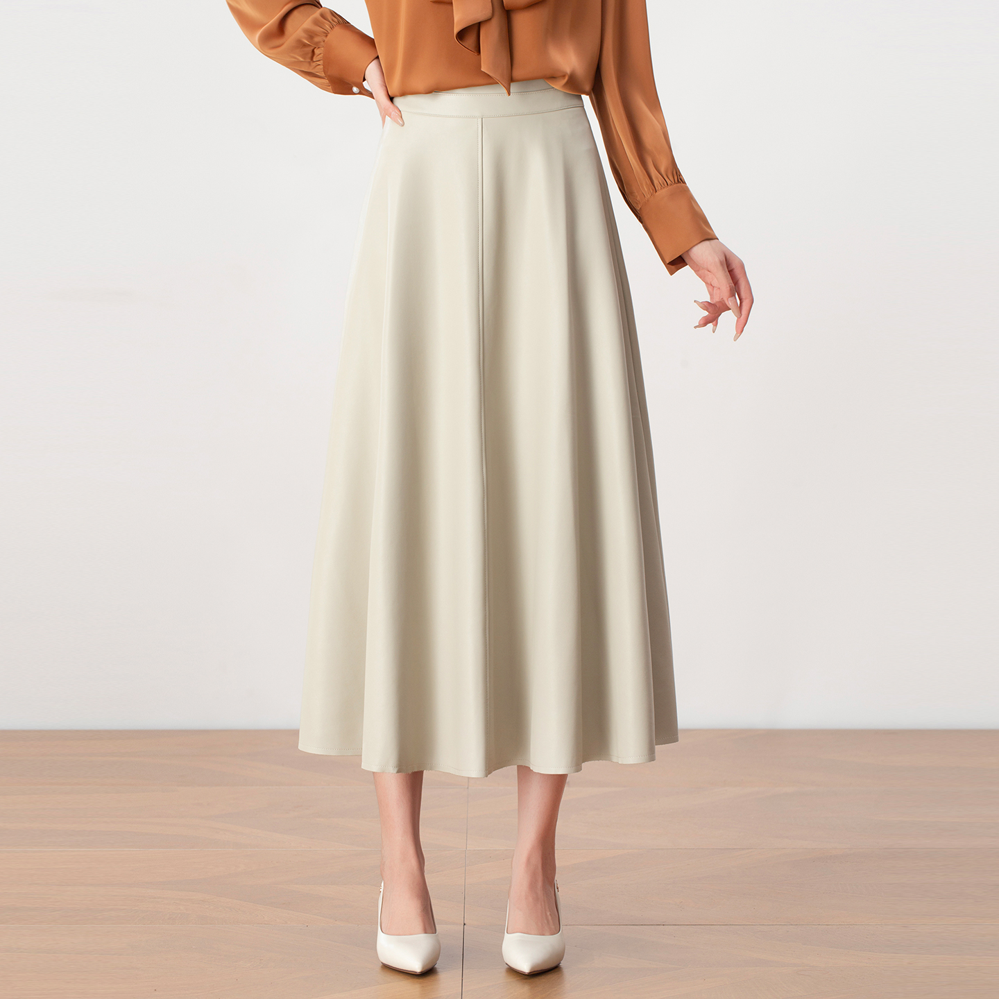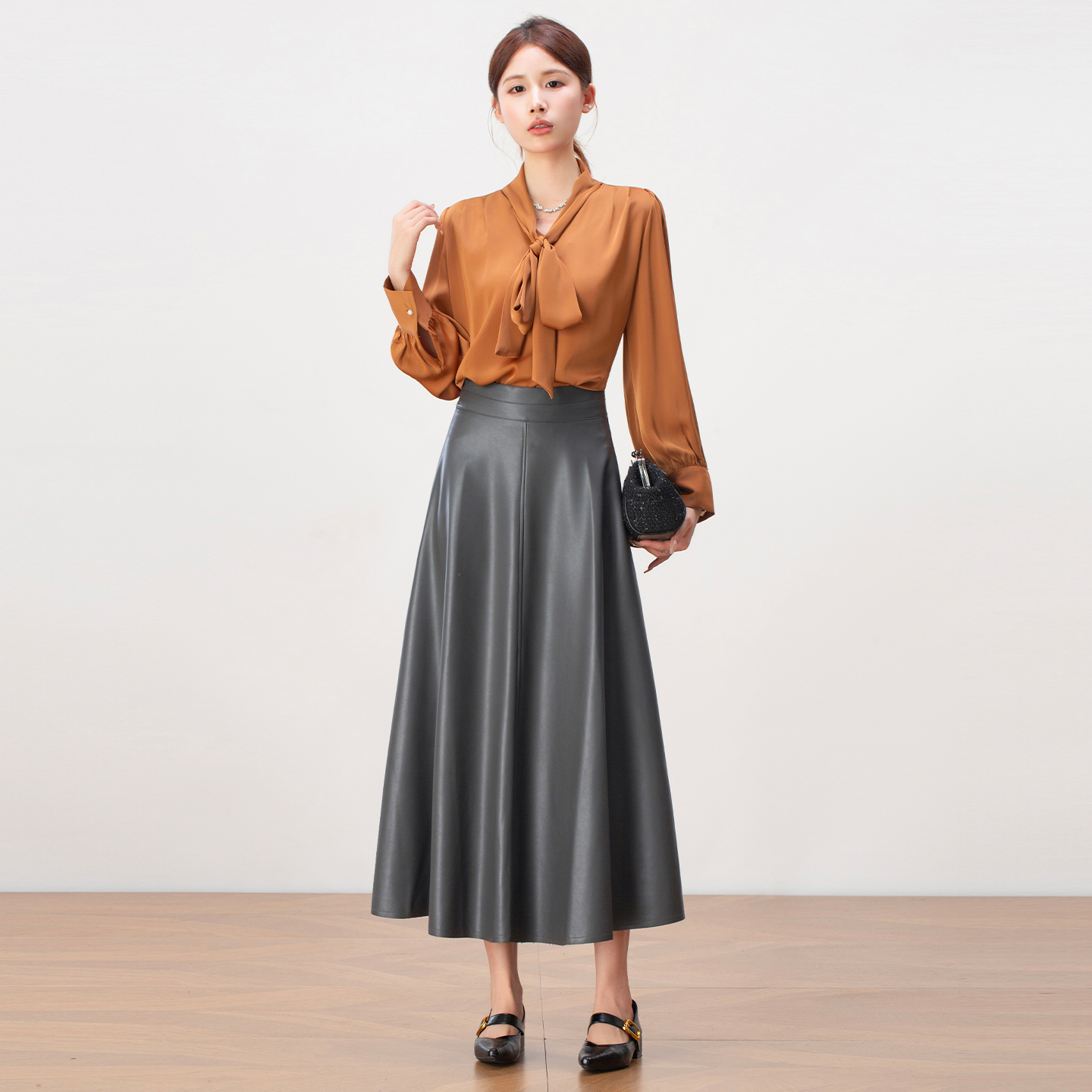 美拉德赫本风高腰皮裙半身裙女2025秋冬新款PU大摆中长款A字伞裙