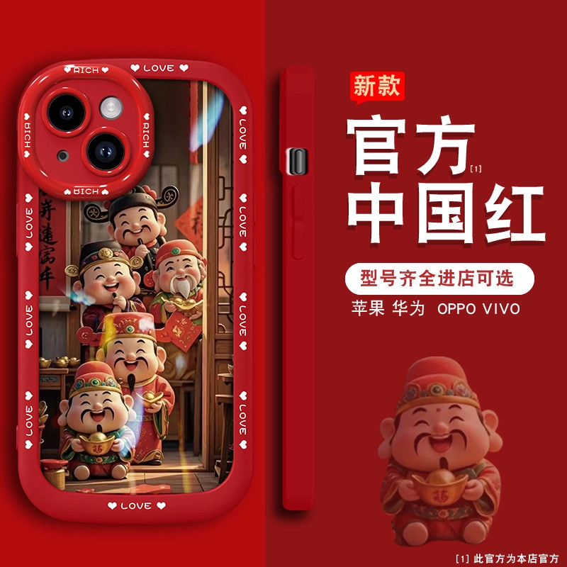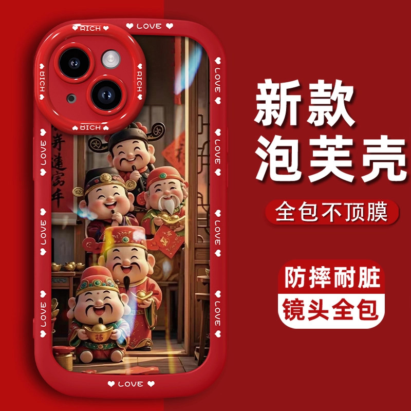 适用于苹果13/14/15手机壳五福财神喜临门泡芙壳防摔2025高级感