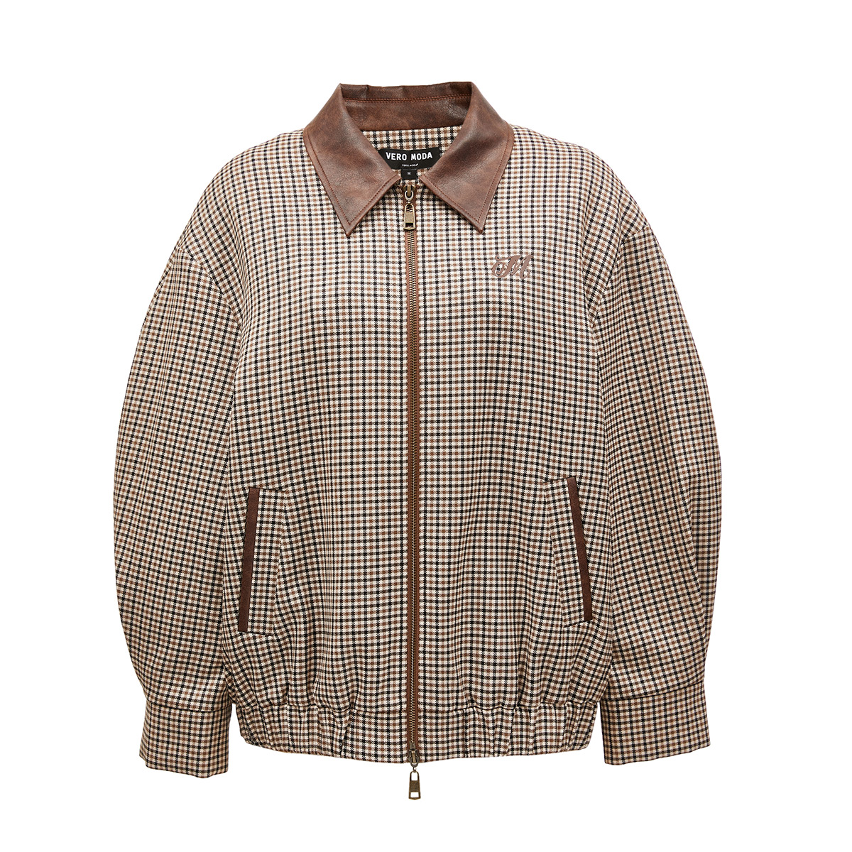 Vero Moda奥莱棉服女2025秋季新商场同款含羊毛PU拼接格纹外套