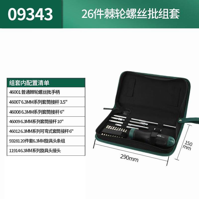世达五金sata 26件棘轮螺丝批组合组套扳手套筒汽车工具套装09343
