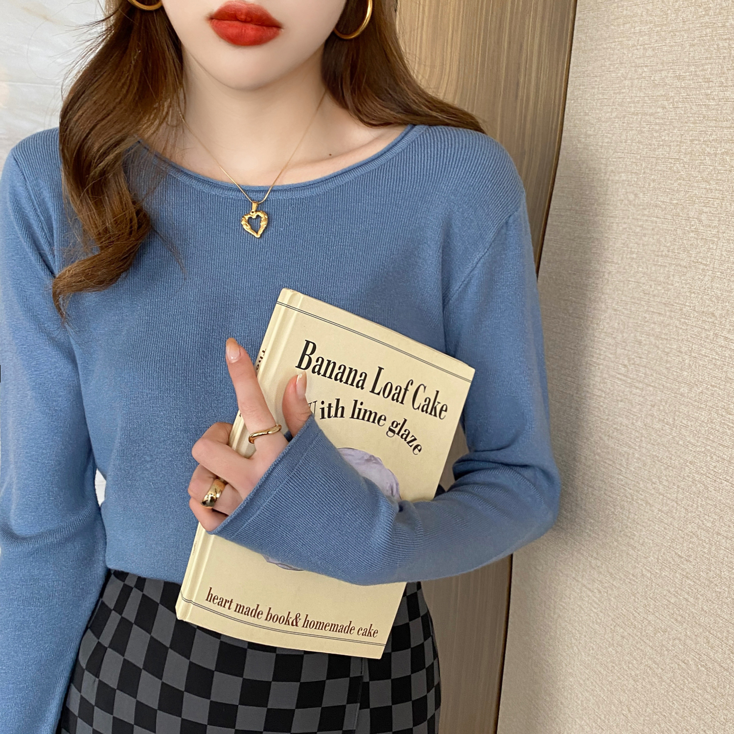 圆领打底衫女白色宽松上衣2025新款内搭秋冬季针织长袖t恤可外穿