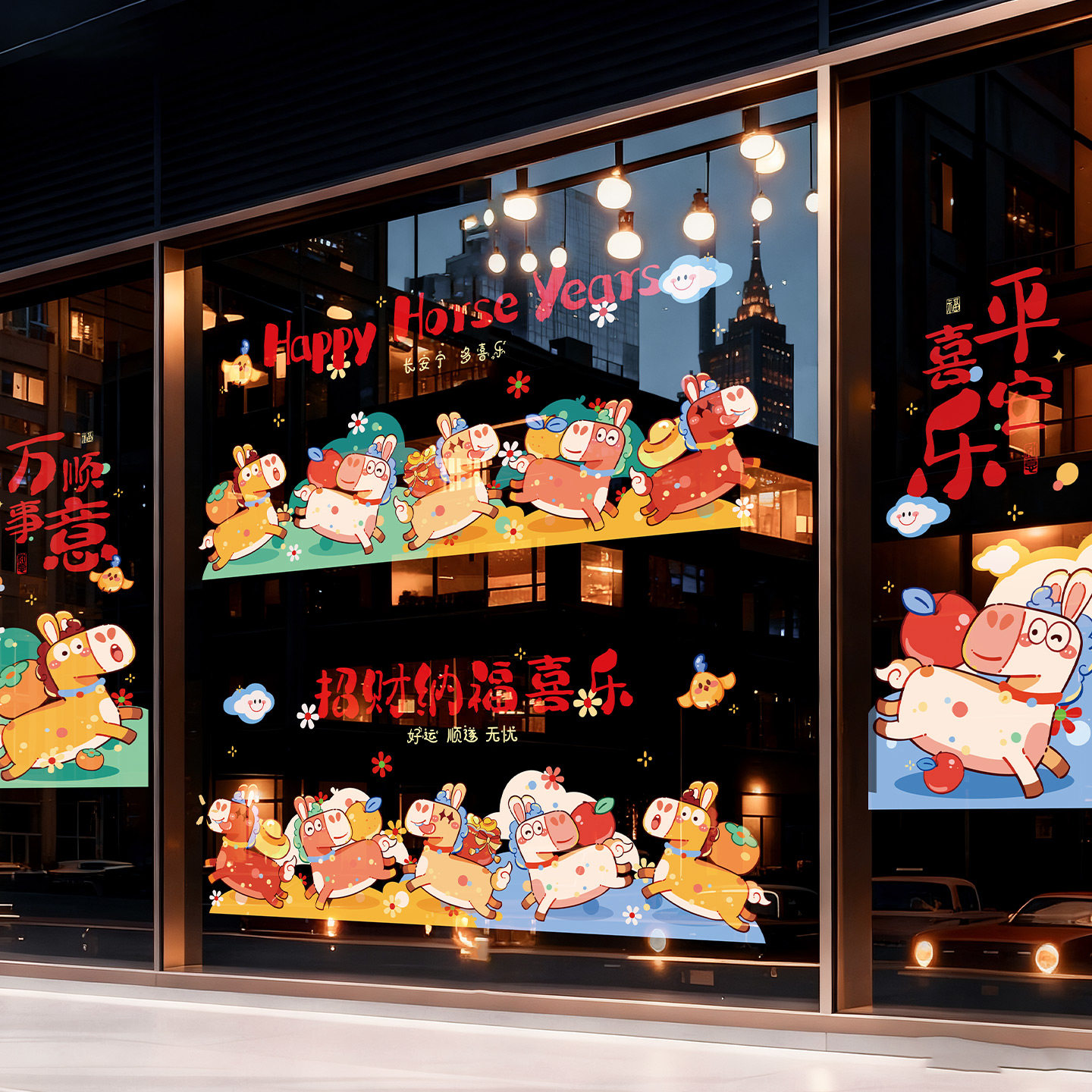 新年玻璃门贴纸2026春节装饰静电贴商场店铺橱窗墙贴过年窗贴年画