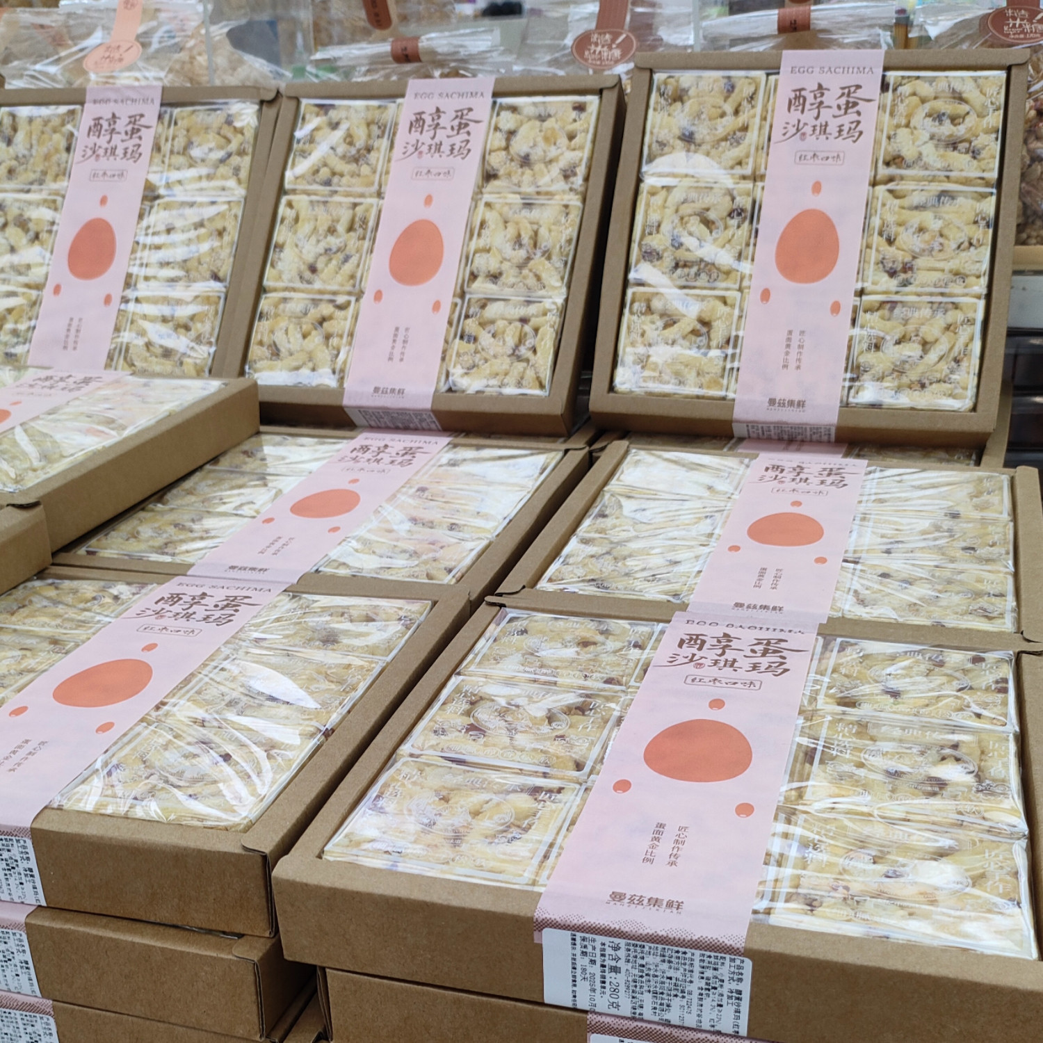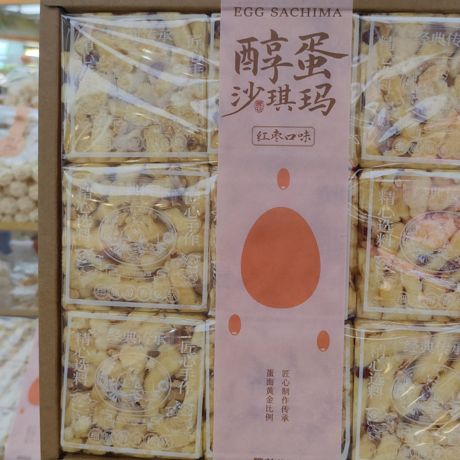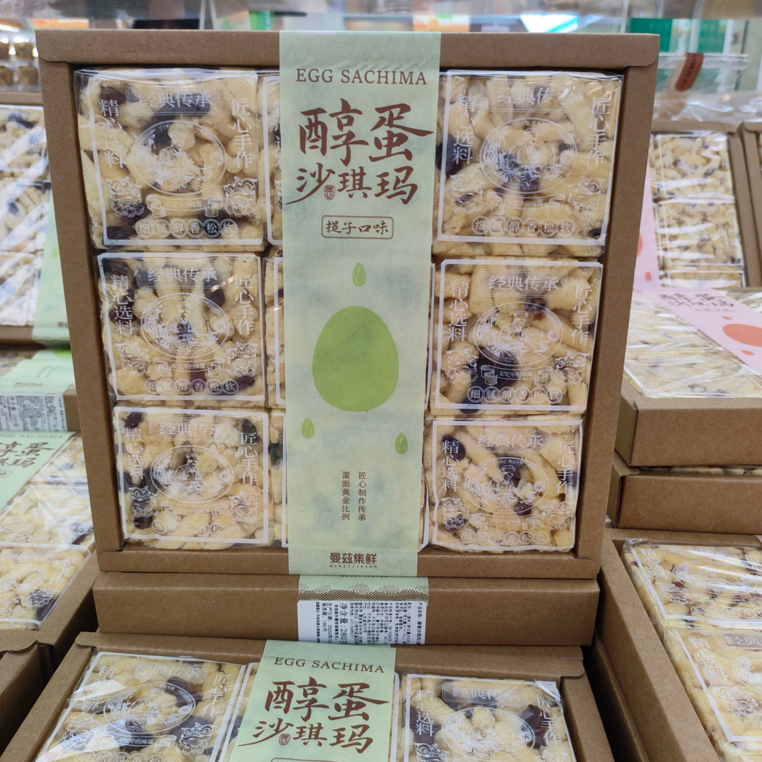 2盒 曼兹集鲜醇蛋沙琪玛红枣味提子味芝麻味黑糖味盒装早餐零食