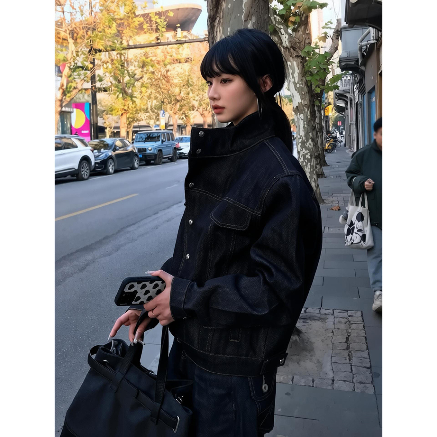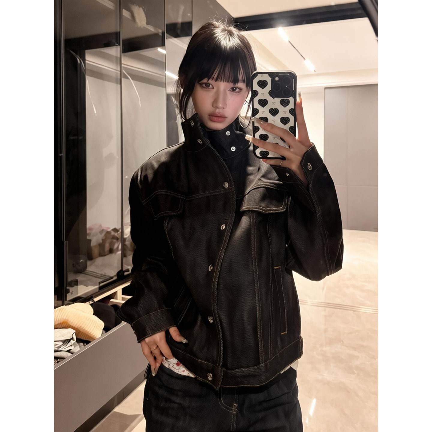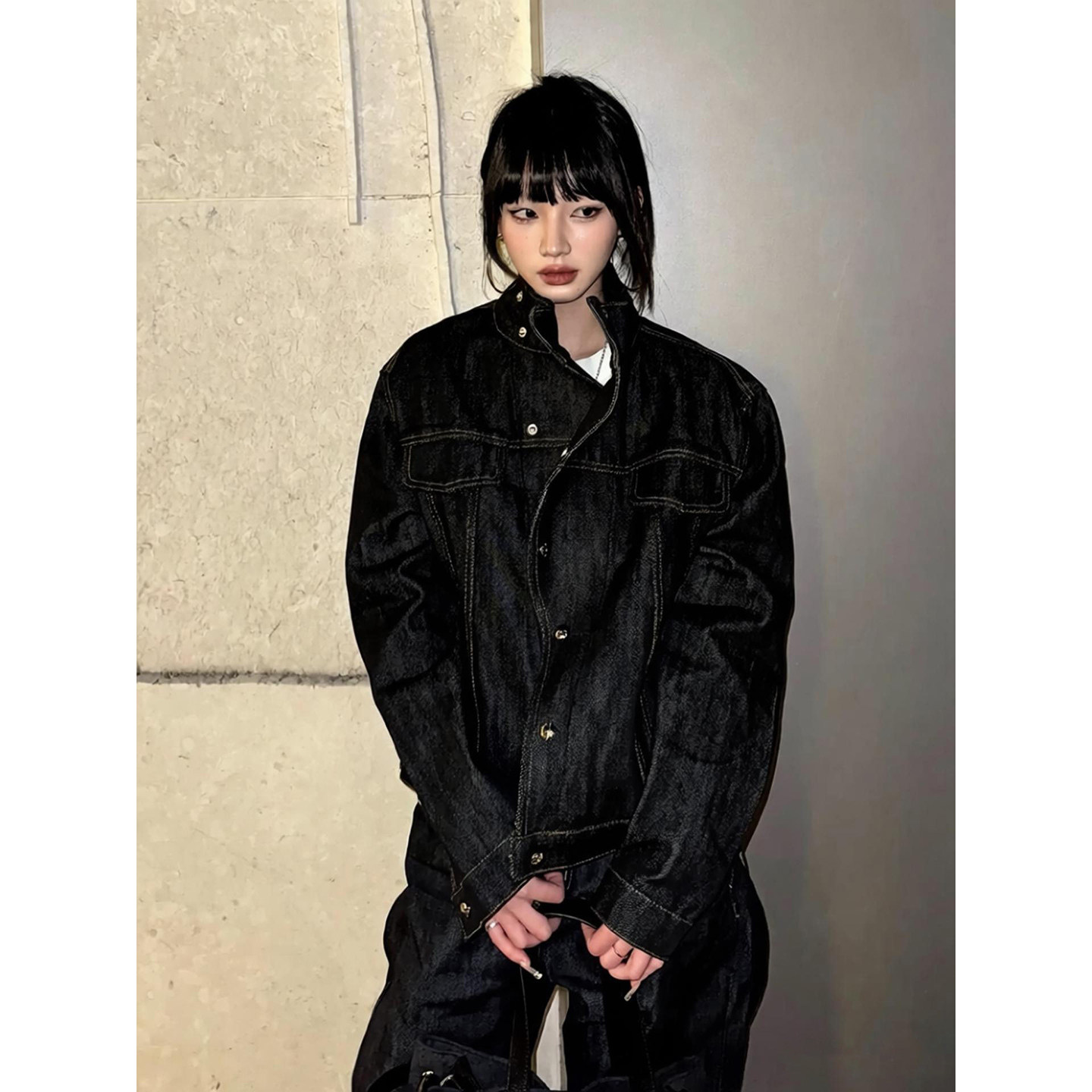 美式复古立领牛仔外套春秋季设计