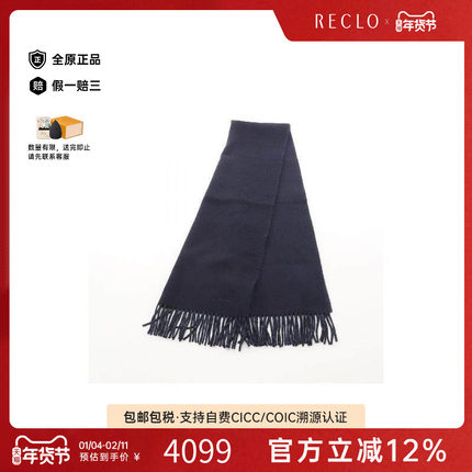 中古Hermes爱马仕男S级99新muffler羊毛围巾/丝巾蓝色