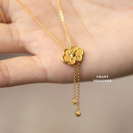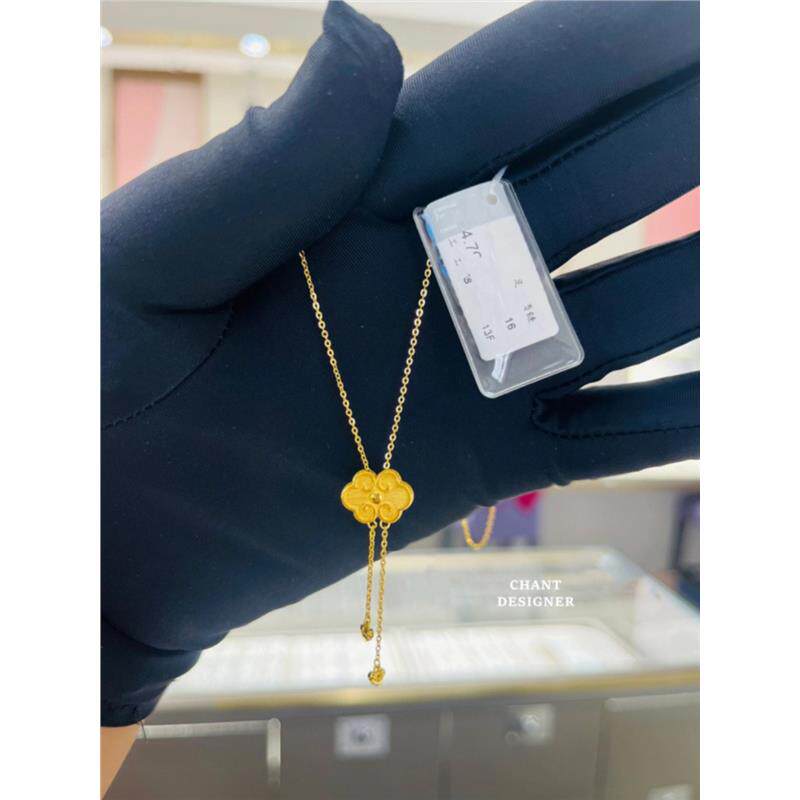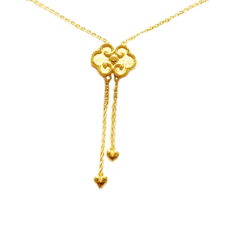 祥云流苏项链纯银镀黄金色女 如意平安锁吊坠锁骨链长命锁礼物潮