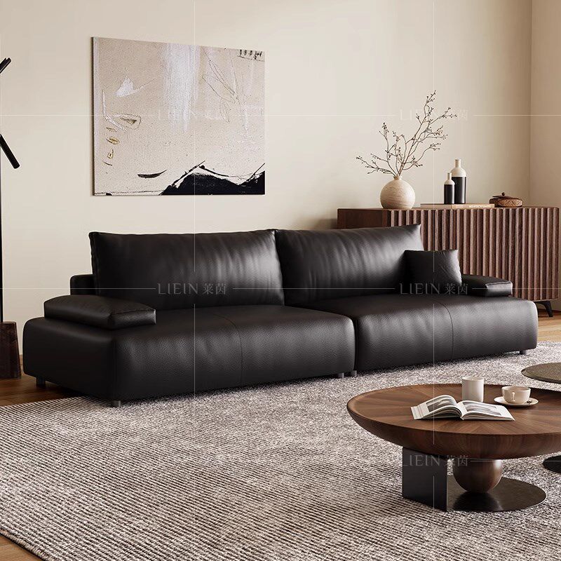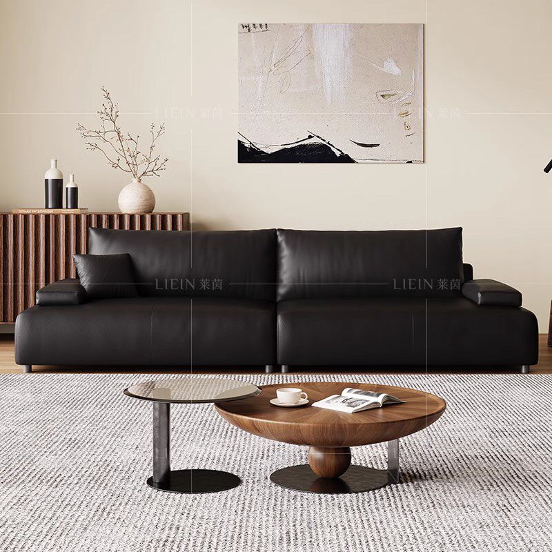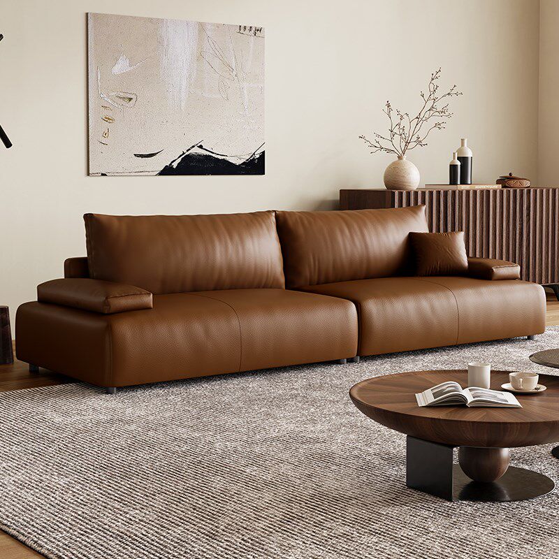 意式极焦糖色头层真牛皮沙发客厅小户型三位豆腐块皮艺沙发