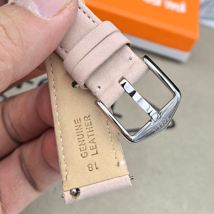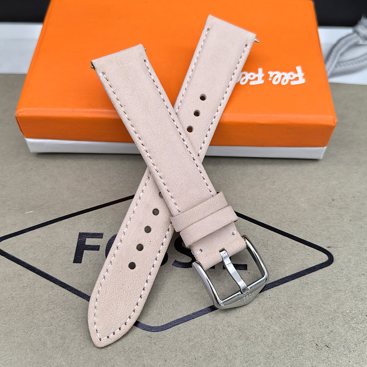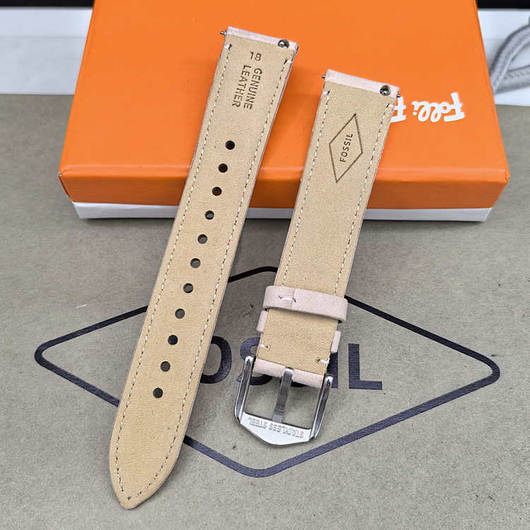 FOSSIL真皮表带粉色18MM通用针扣快拆女士手表配件