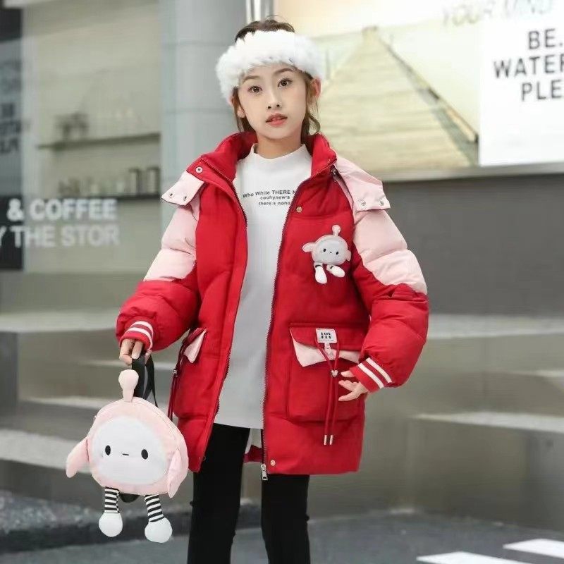 儿童冬季保暖羽绒棉服蛋仔带包派克服中长款正码韩版童装加厚保暖